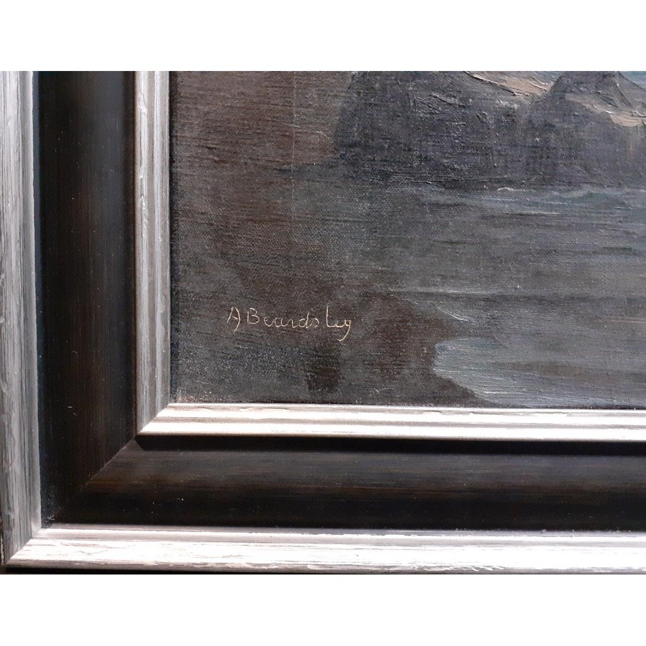 ARNOLD BEARDSLEY. Sunset / Moonlit seaside scene signed oil on canvas. Unglazed. Frame size 85cm x 60cm approx.