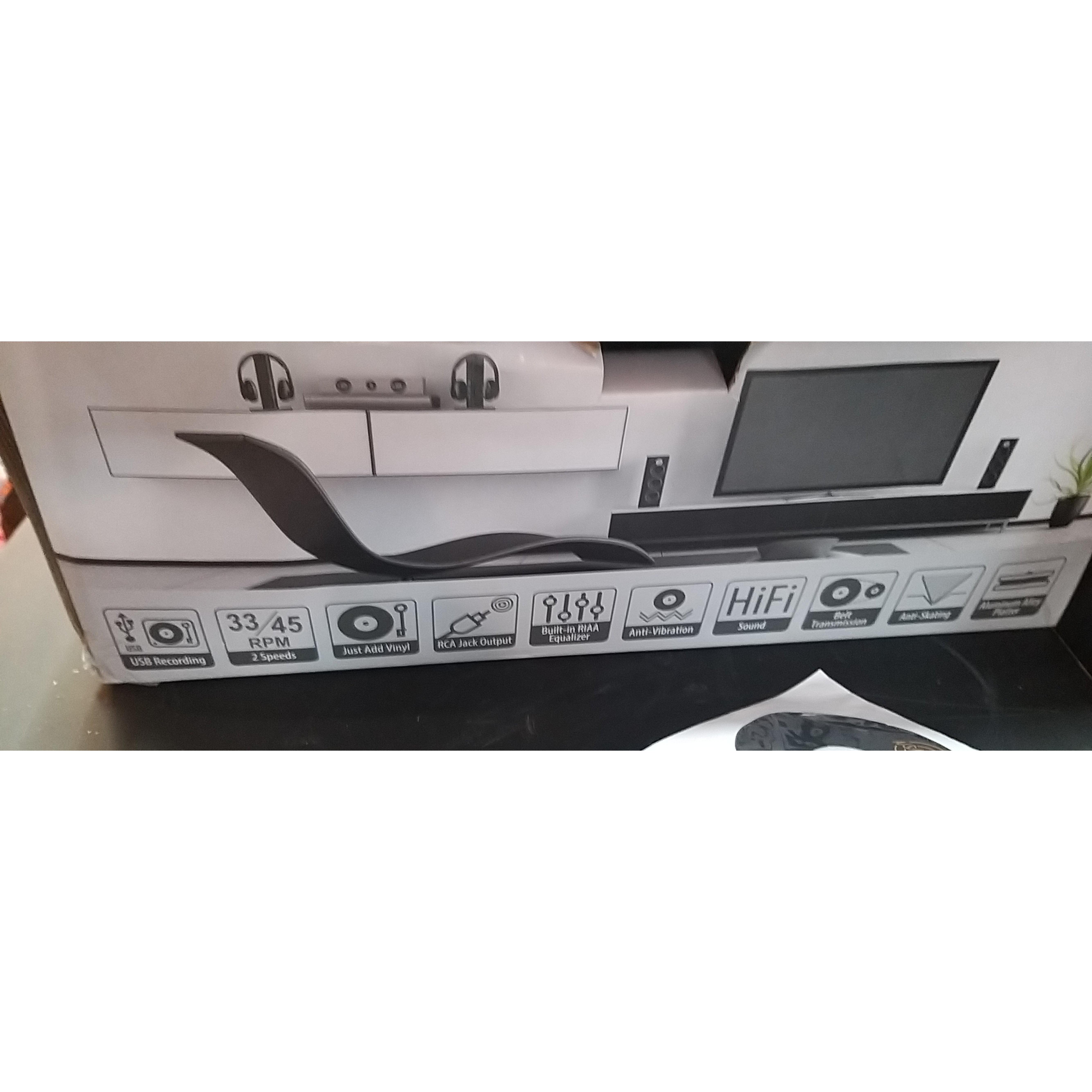 NSA AUDIO TURNTABLE Pro with USB recording etc with a mixture of cables to include a power cable etc still in its box - dimensions 44cm x 36cm approx
