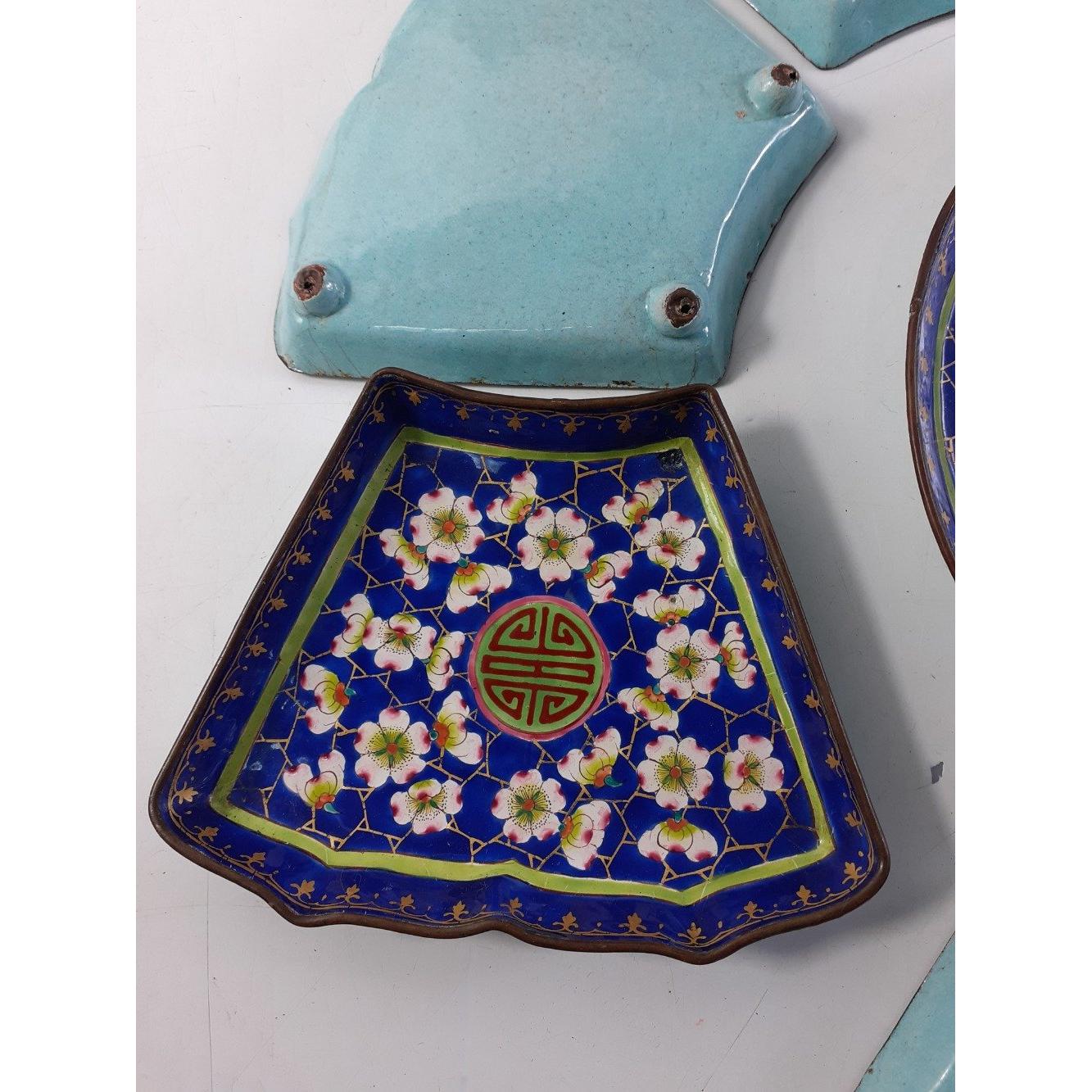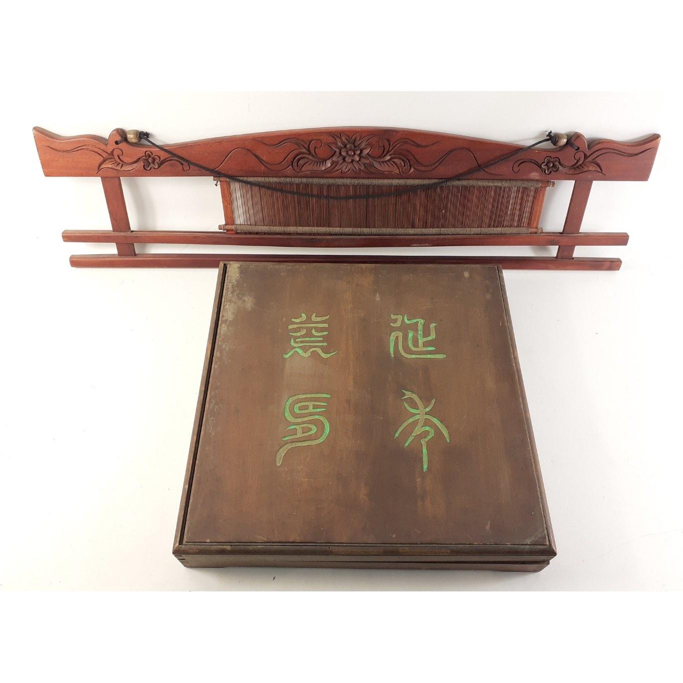 A boxed Chinese enamel condiment tray within a wooden box 38 38cm approx. and also from Laos a decorative loom hanging piece (80cm long approx)Approx 2 pieces