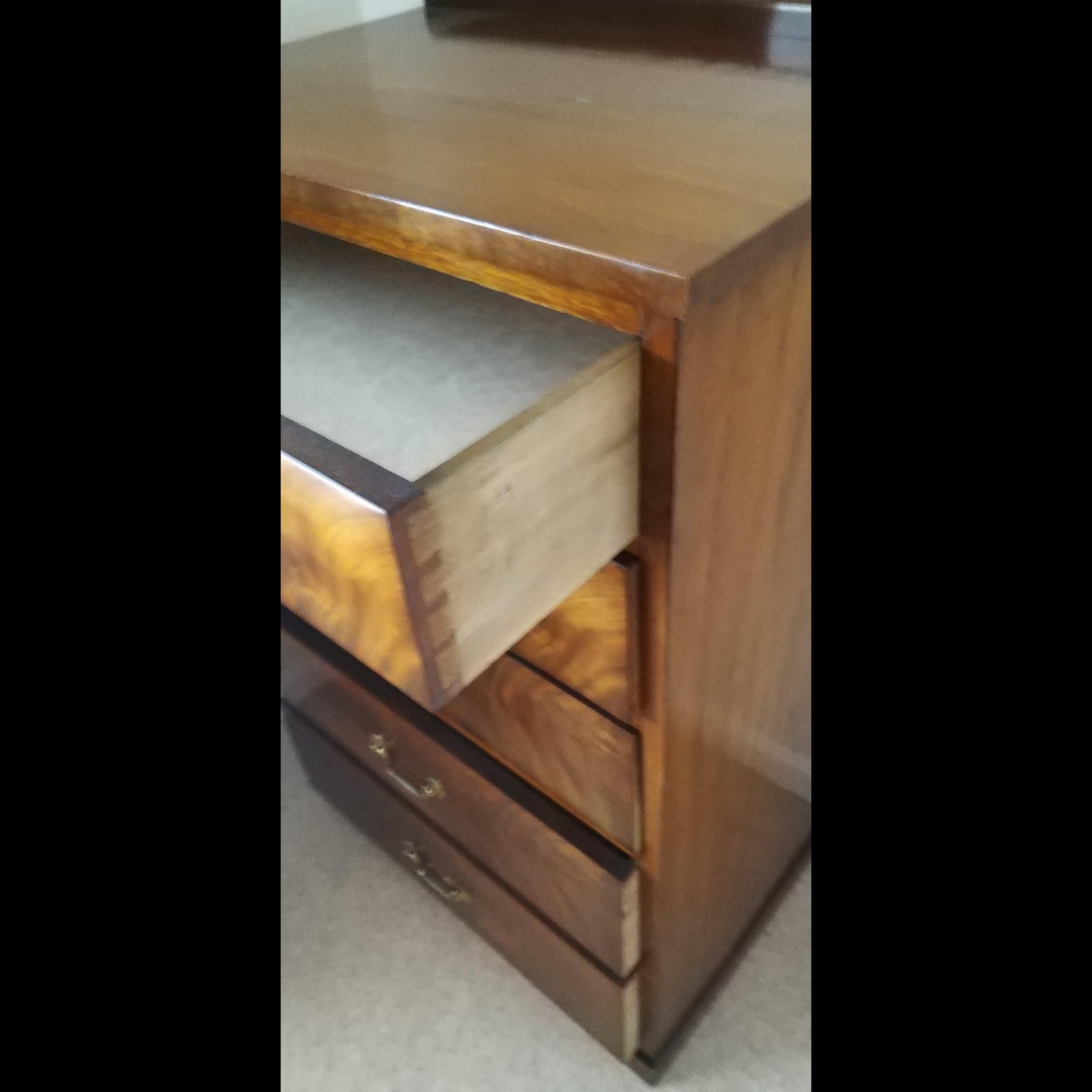 A mahogany style Georgian reproduction c5 drawer hest of drawers with brass style handles 90cm tall x 60cm width x 40cm depth approx