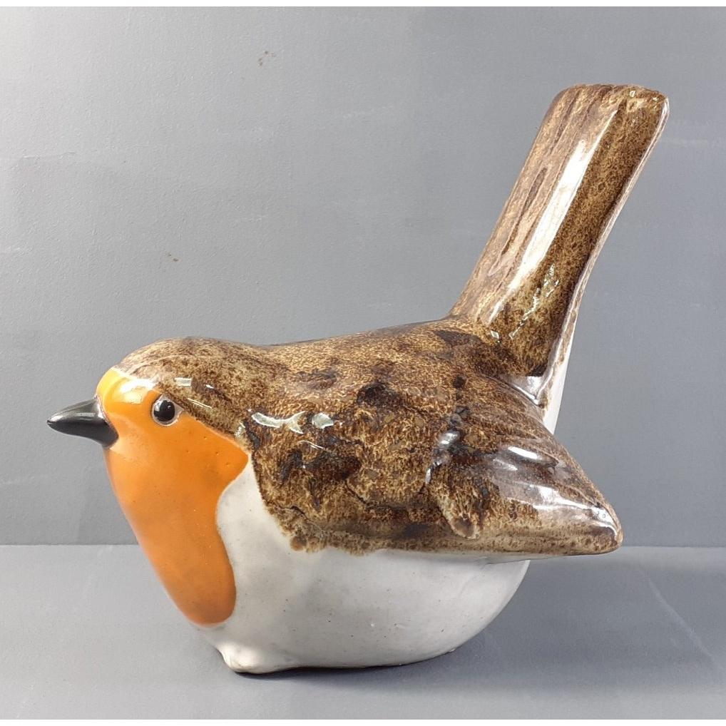 Unusual stoneware robin ornament. H: 19cm (including tail) W: 13cm L: 19cm approx A substantial piece. No obvious damage/repair