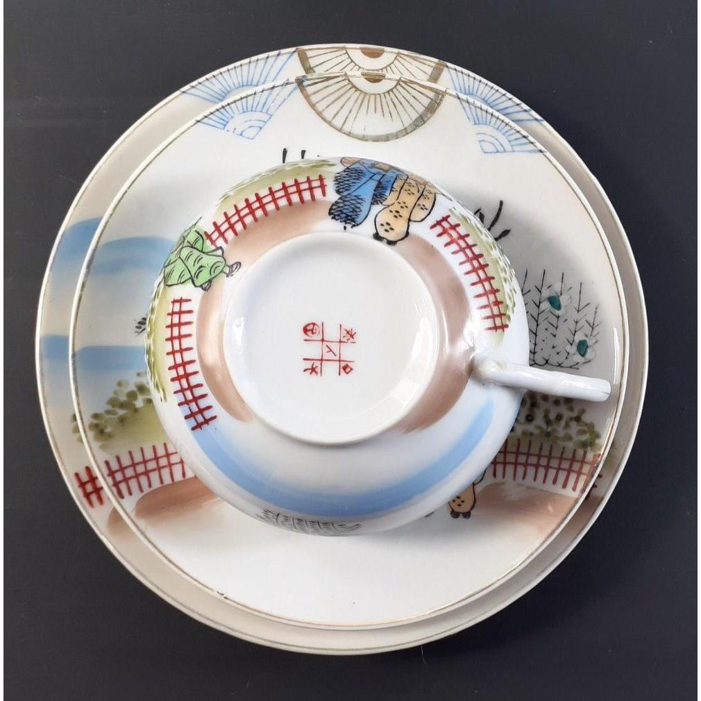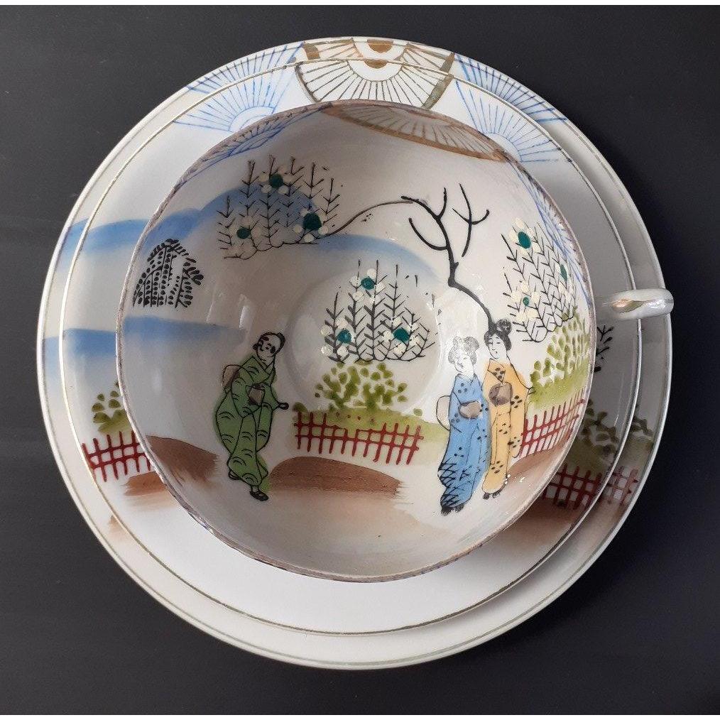 Oriental NORITAKE style tea service comprising six cups and saucers, ten side plates and a 19cm plate. Pretty set in good useable condition.