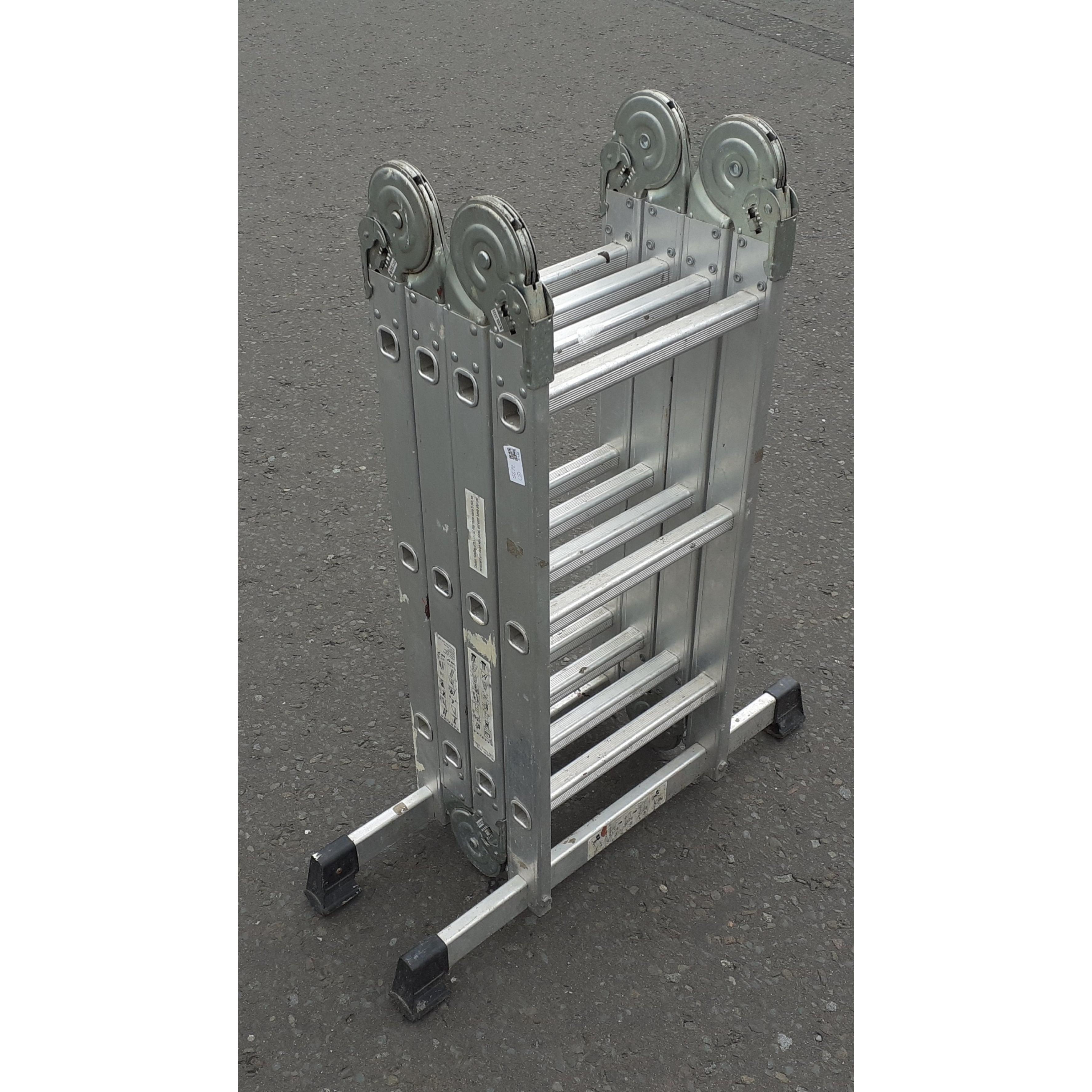 A four piece folding footed ladder. Model 7618, rated to 150kg. In good used condition.