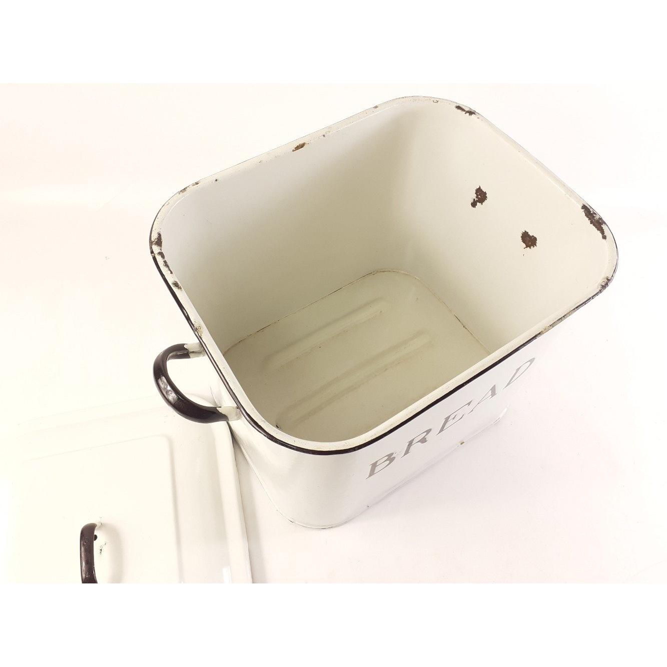 A white enamelled vintage bread bin, 35 x H23 x D24cm approx. Some honest wear to enamel.Approx 1 pieces