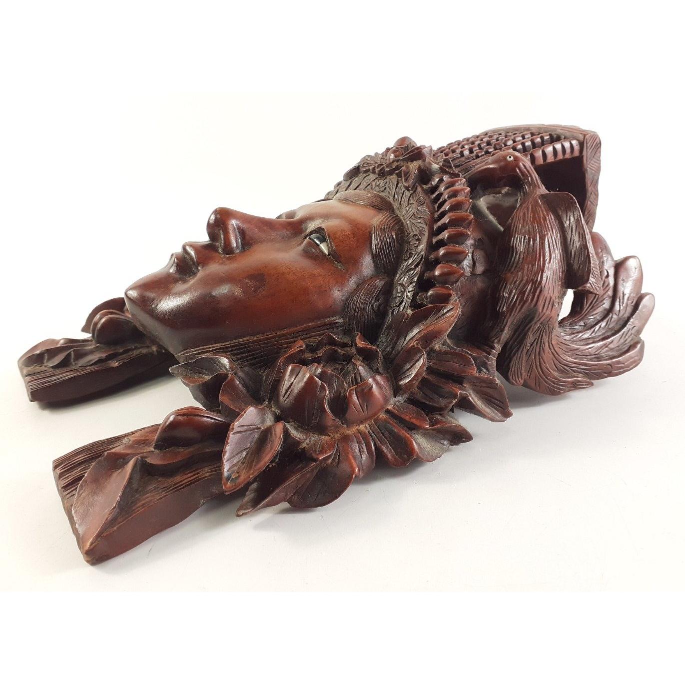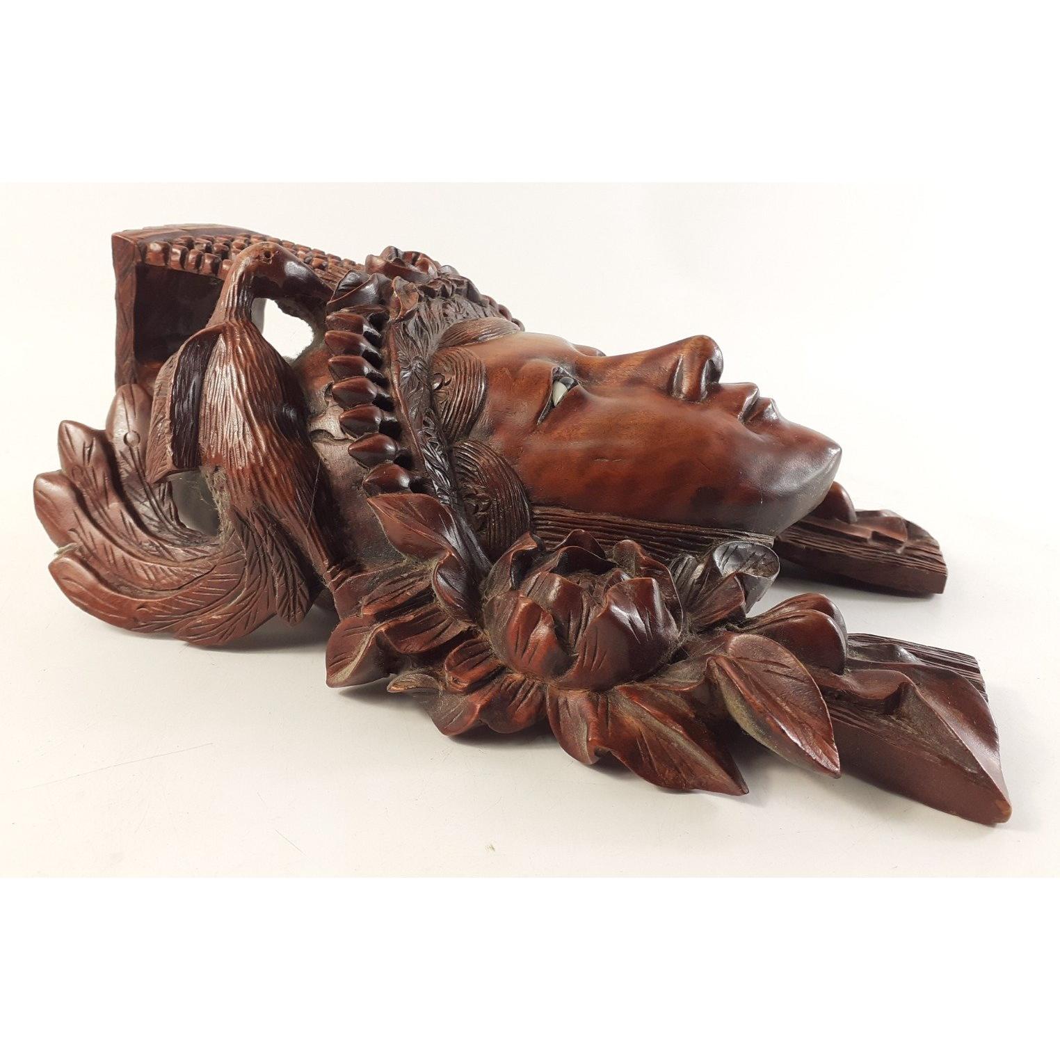 TOP QUALITY! Chinese Rosewood hand-carved Empress or Deity wall plaque mask. Clearly of some quality. 27cm approx and in lovely condition. NB, one of the headdress birds is missing an eye.