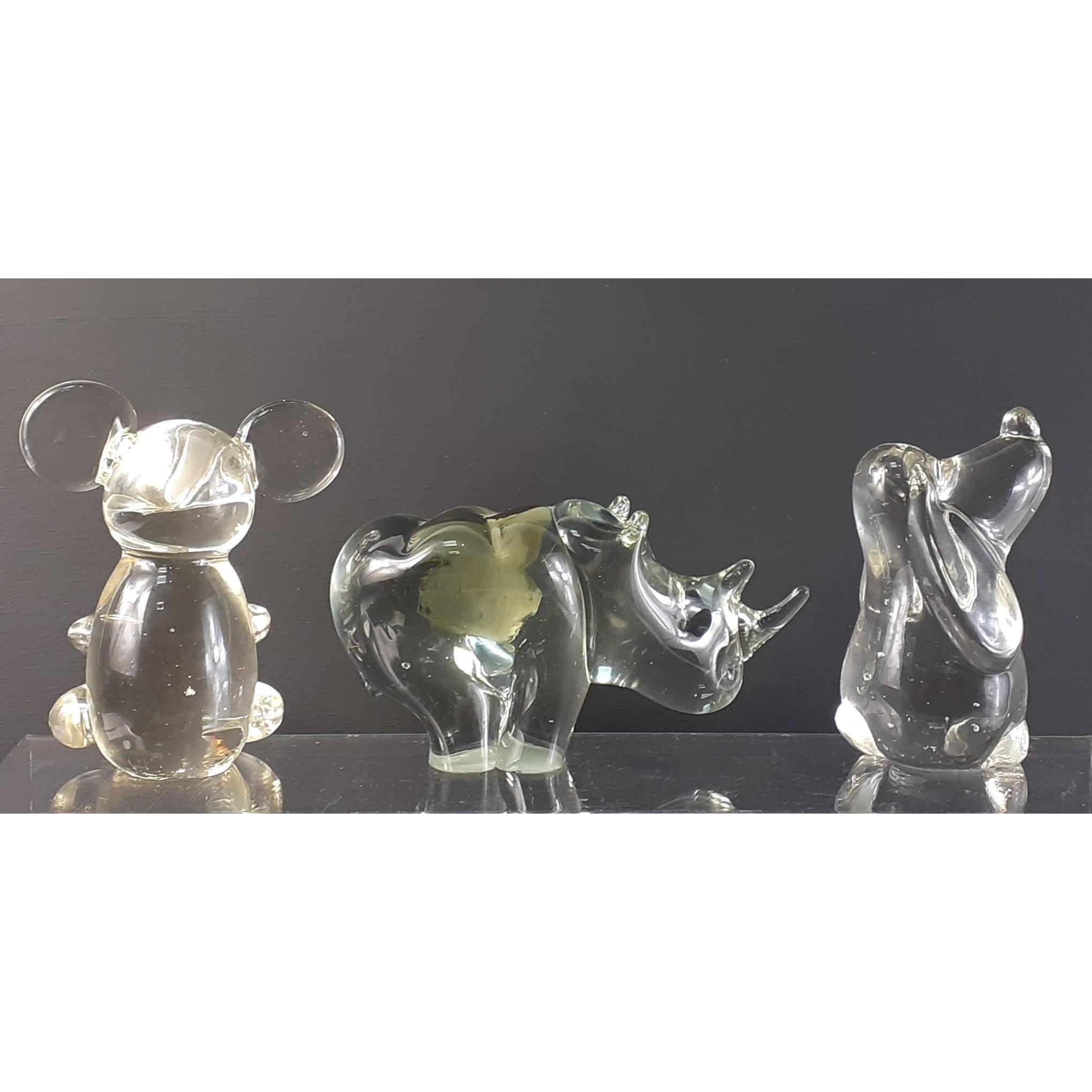 NGWENYA glass paperweight. Lot to include a Ngwenya labelled Rhino, a similar Droopy style dog and an art glass mouse. Mouse has a couple of minor 'nibbles' on close inspection.Approx 3 pieces