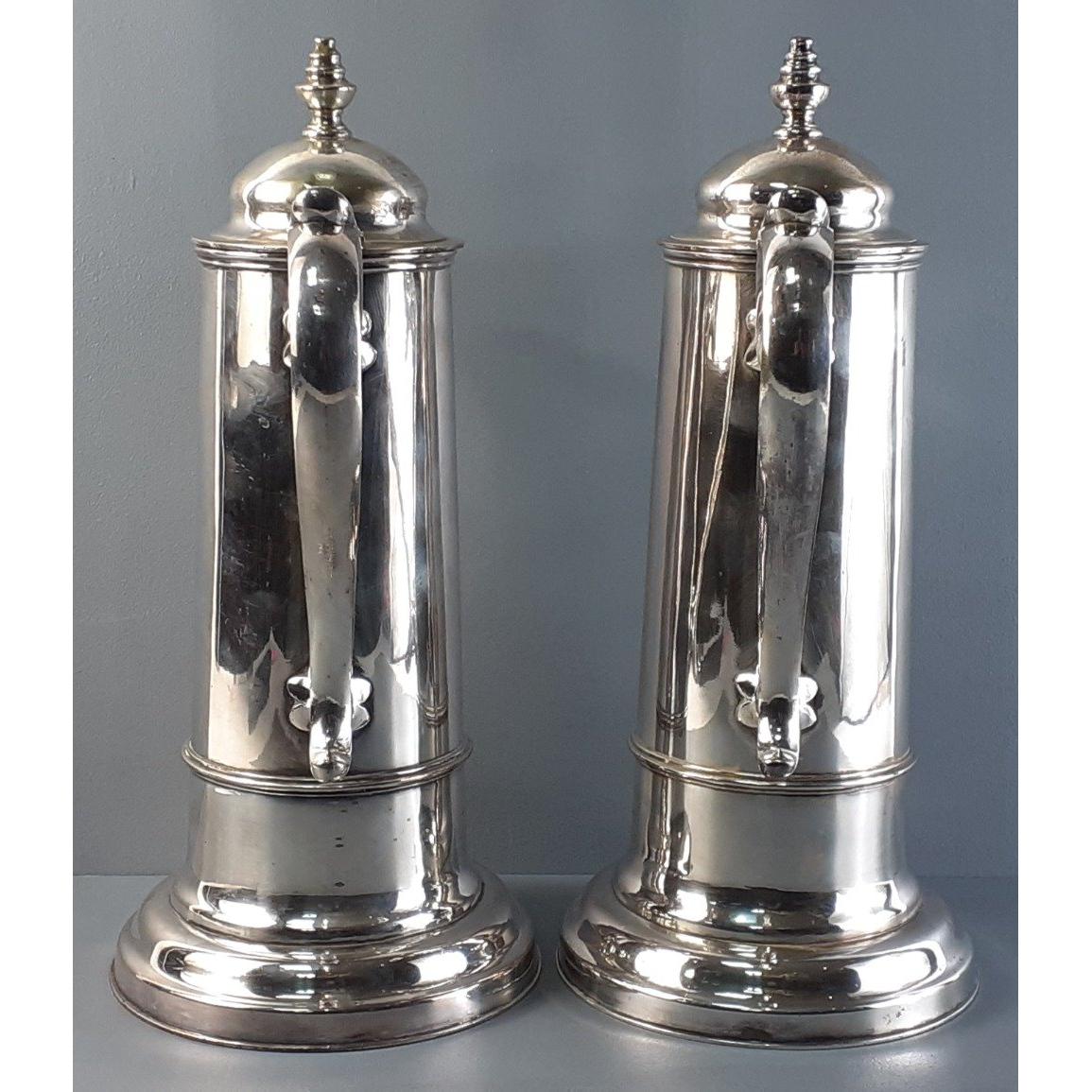 Two superb large Silver plate communion lidded tankards by acclaimed maker THOMAS WILKINSON. Each stands 36cm tall approx and in good order with strong hinges, no dents or repairs.Approx 2 pieces