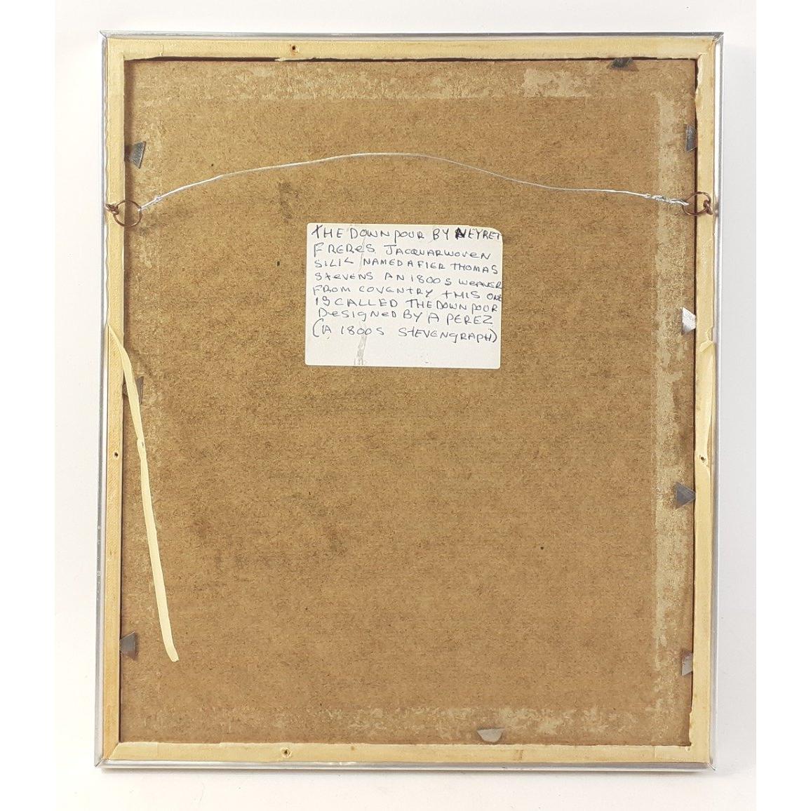 NEYRET FRERES Stevengraph silk picture 'THE DOWNPOUR'. Frame size 33 x28cm approx. Dent in frame.Approx 1 pieces