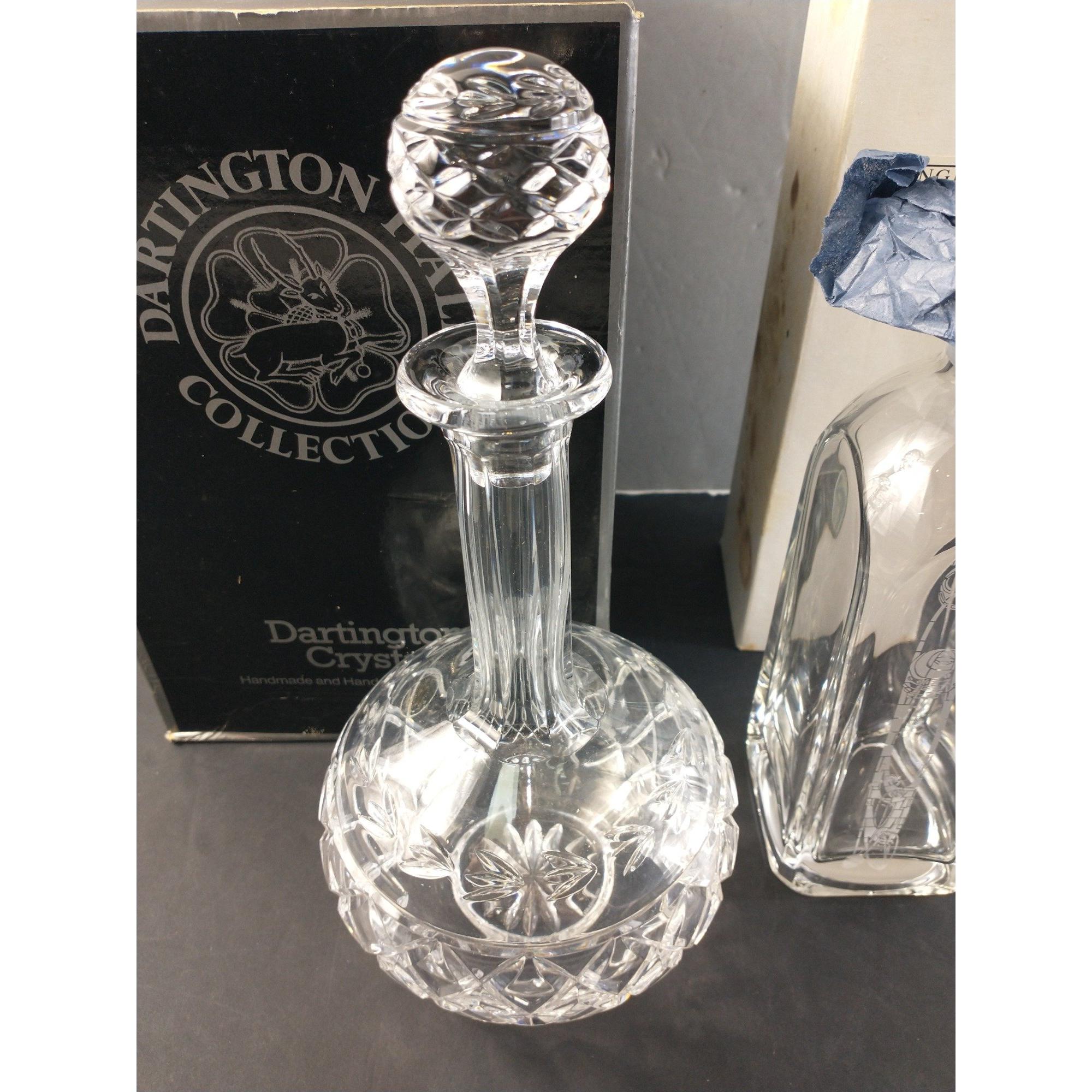 Two boxed decanters one by DARTINGTON CRYSTAL (30cm high) and the other by LINDA WHITE & ANDY SHARP of Dundee engraved with a Rennie Mackintosh style design.Approx 2 pieces