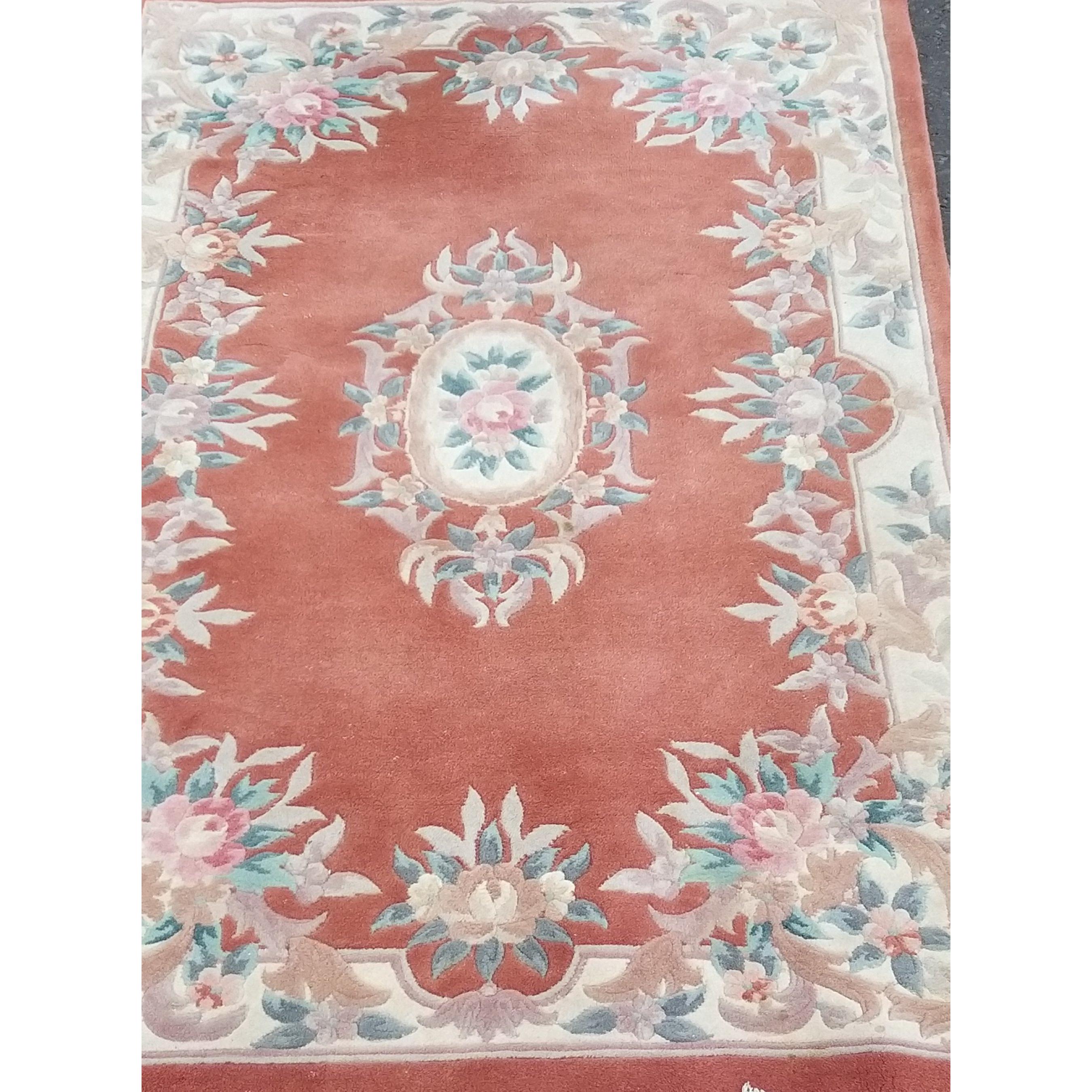 An attractive wool rug in shades of coral and cream. Measures 190 x 120cm approx. In good conditionApprox 1 pieces