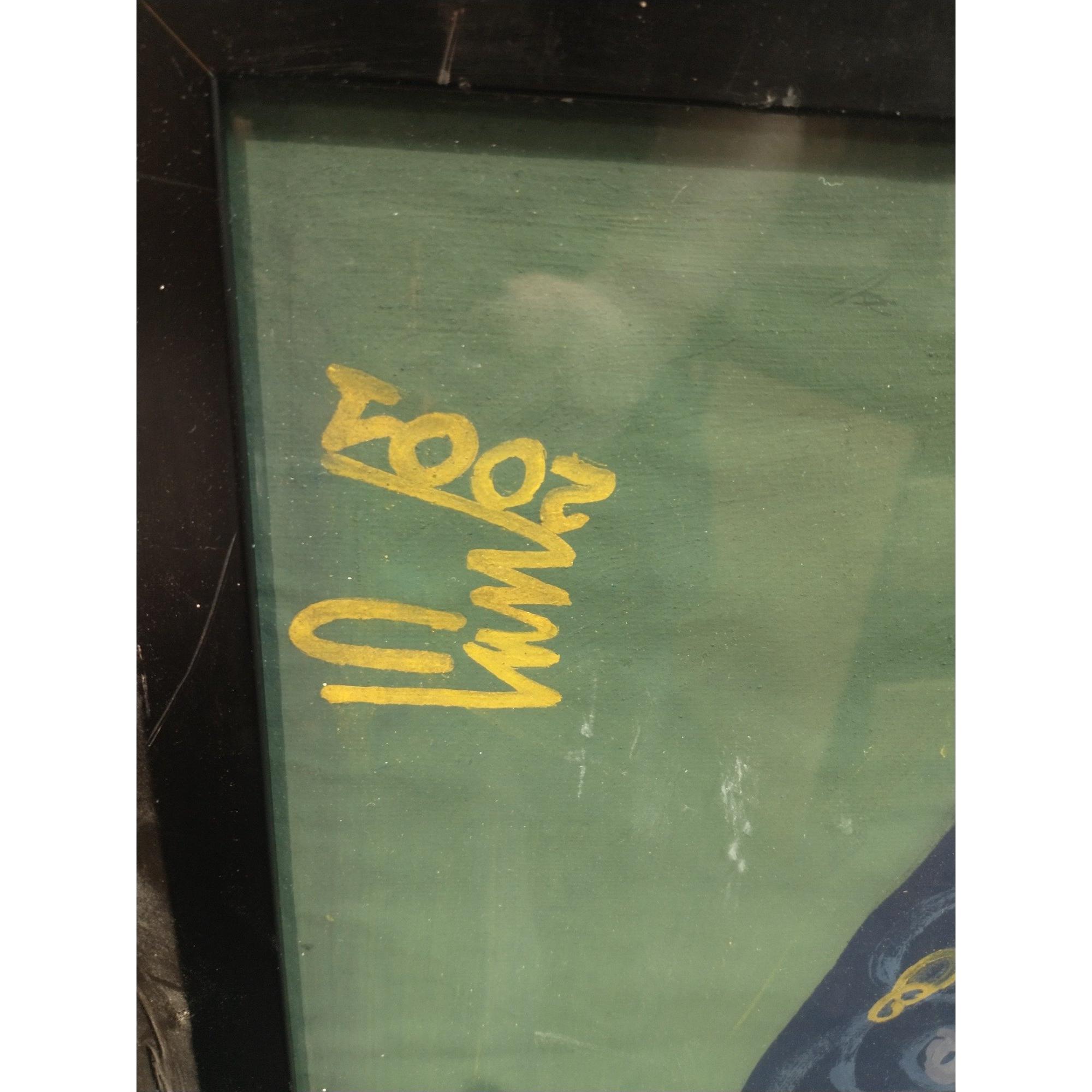 Large framed abstract painting. Dated 2001. Frame 115cm x 85cm approx.