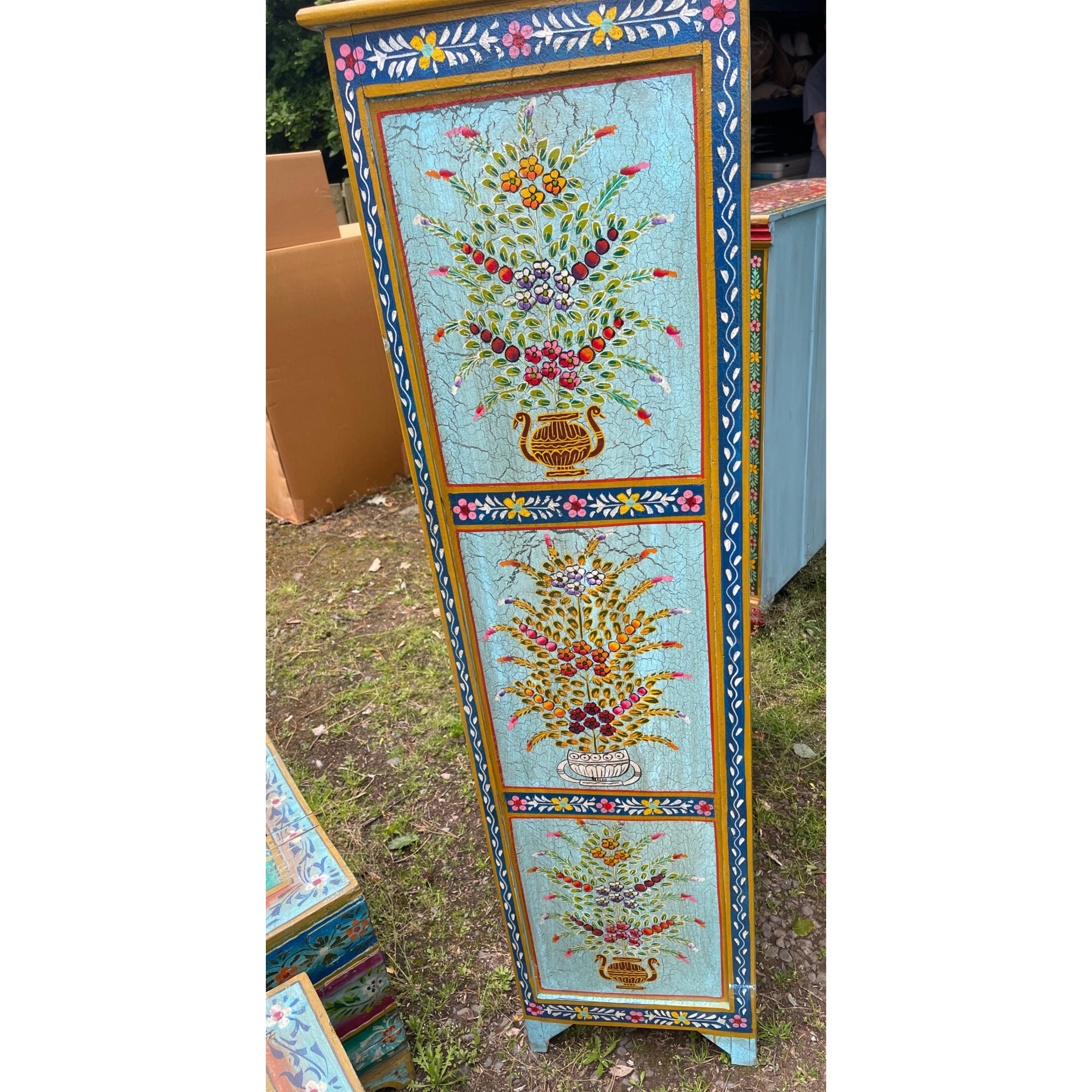 BRAND NEW ITEM UNUSED A two door hand painted and handcrafted mango wood cupboard. Part of the Florence Meadows collection produced in JAIPUR - dimensions width 75cm x depth 42cm x height 120cm approx