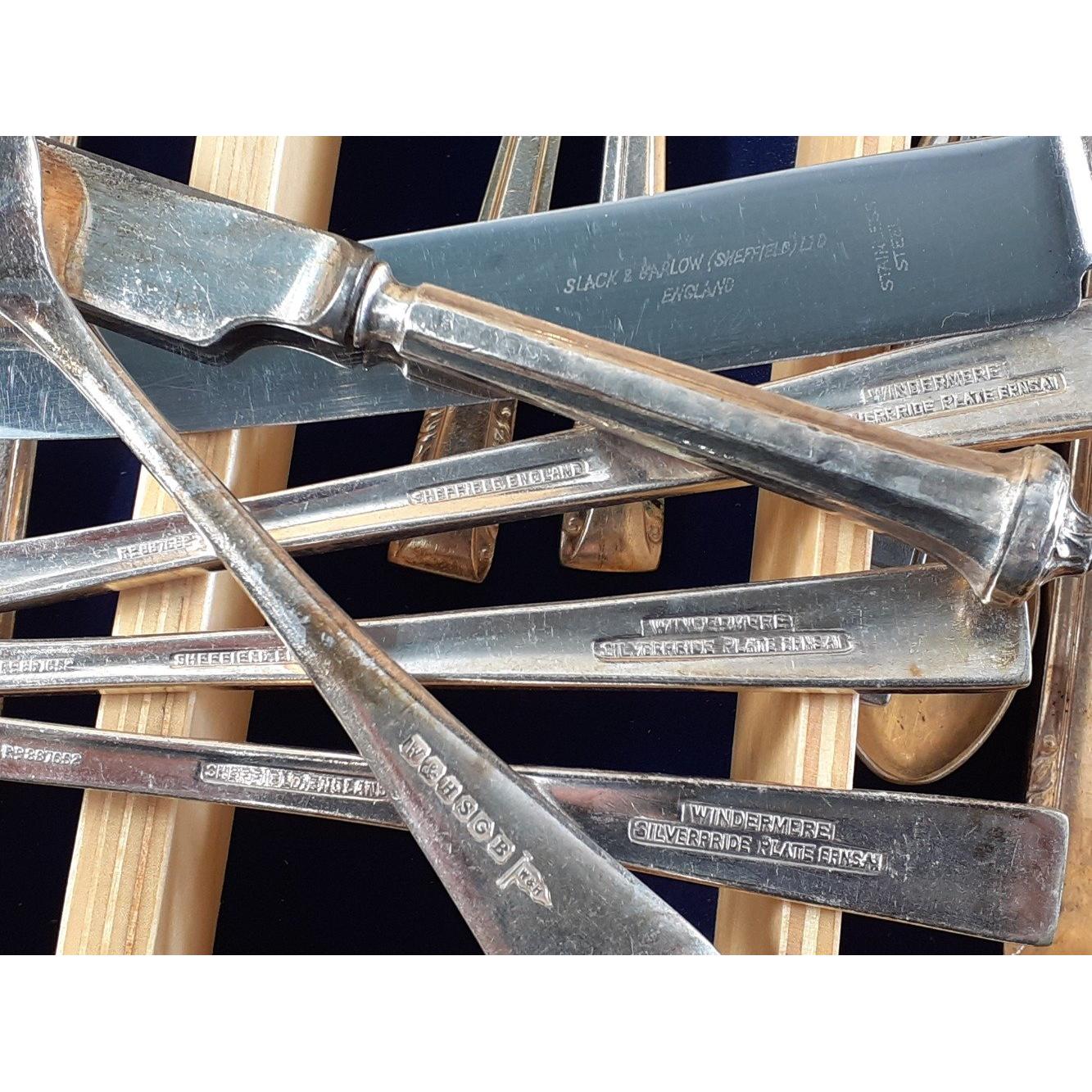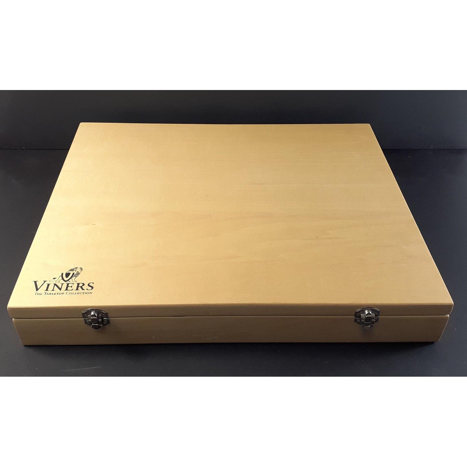 A large wooden cutlery canteen stamped VINERS ( 49x40cm approx) with contents of mixed cutlery
