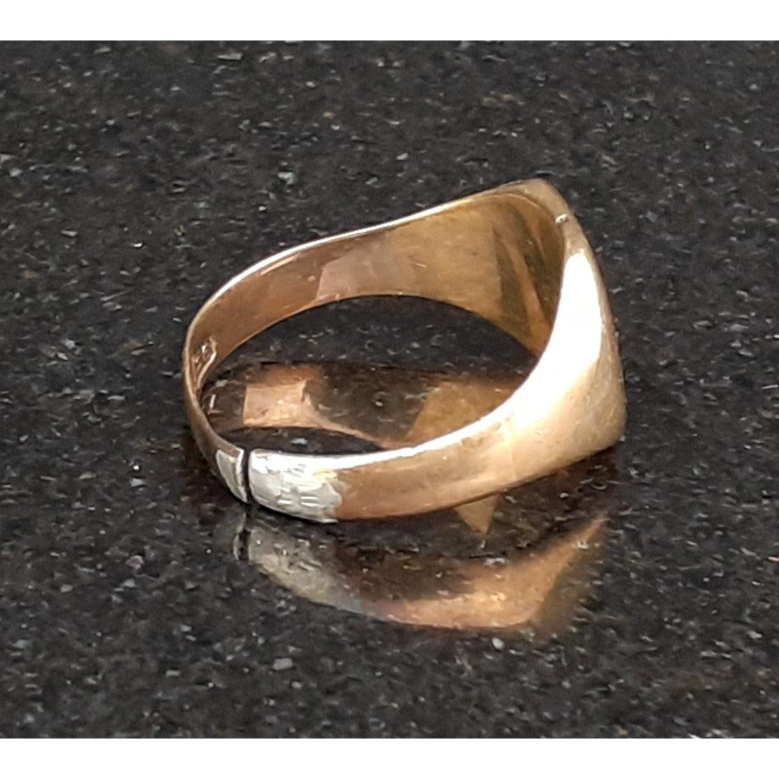 A 375 hallmarked gold gent's signet ring. Size R split soldered. Weight 5.2g approx