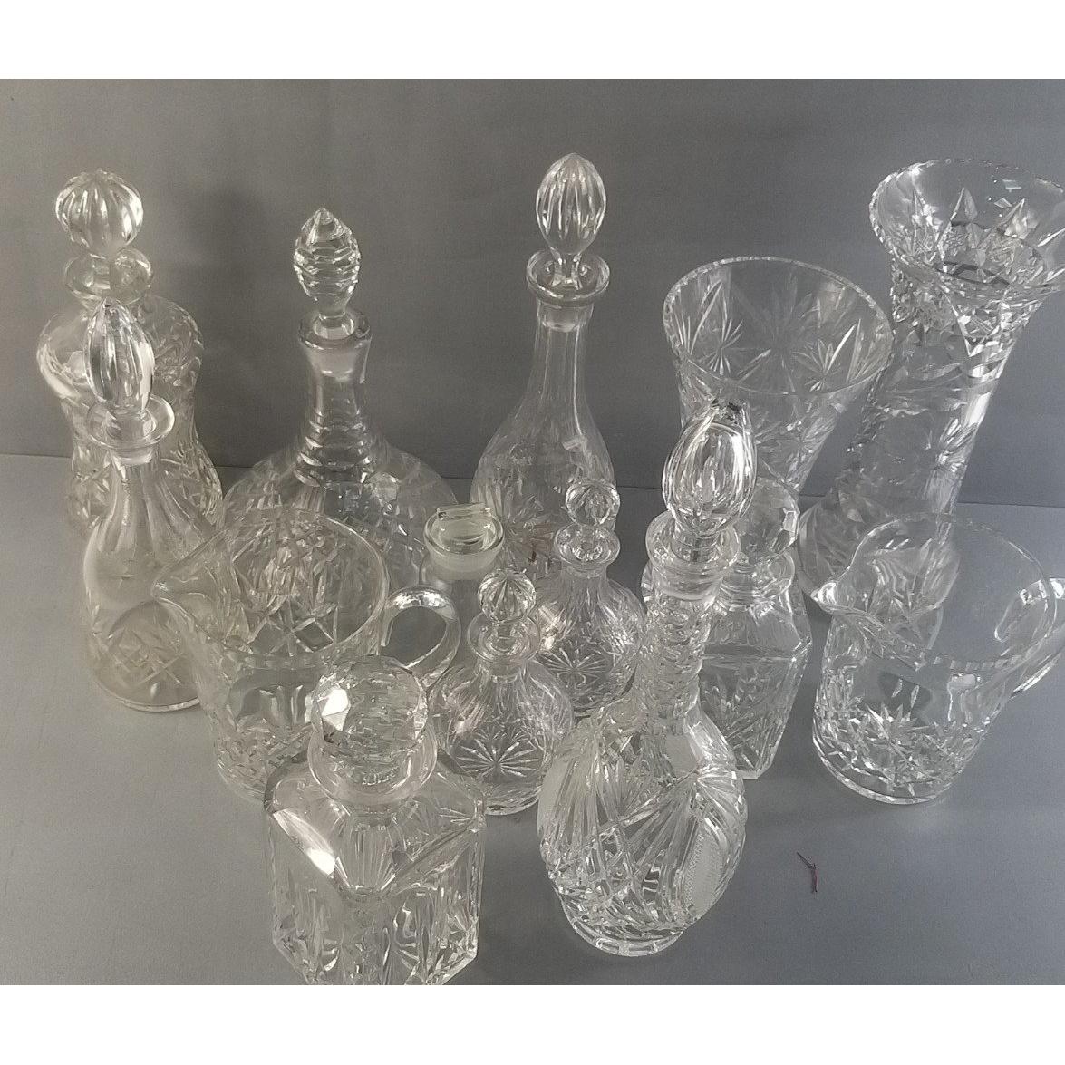 A lot of good quality decanters and other glassware. Includes a very nice ship's decanter and many other attractive pieces. All in good condition.