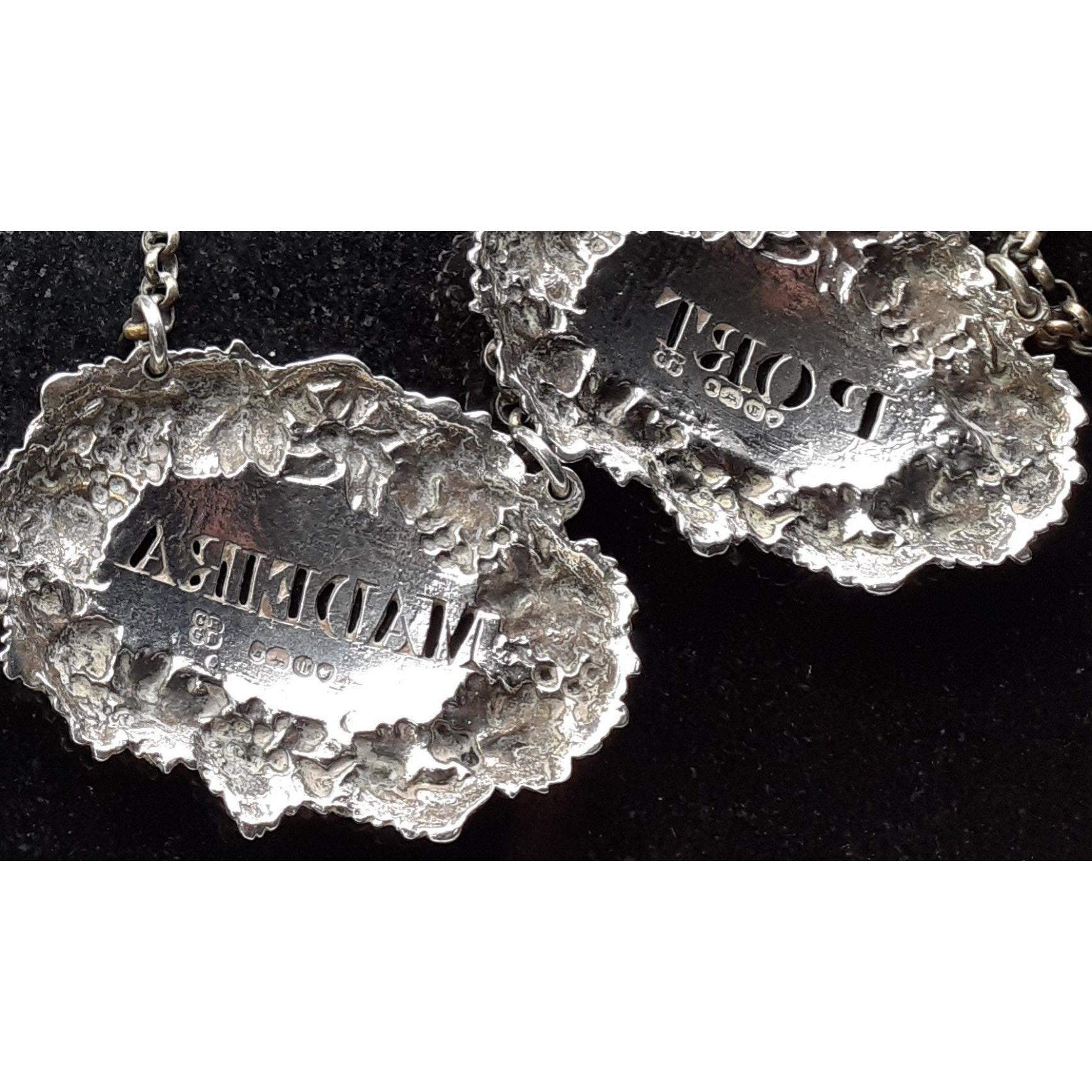 A wonderful pair of silver hallmarked DECANTER LABELS for Madeira and Port. Hallmarked London 1838 by Charles Reilly & George Storer. Each 65mm approx, gross weight 57.5g approxApprox 2 pieces
