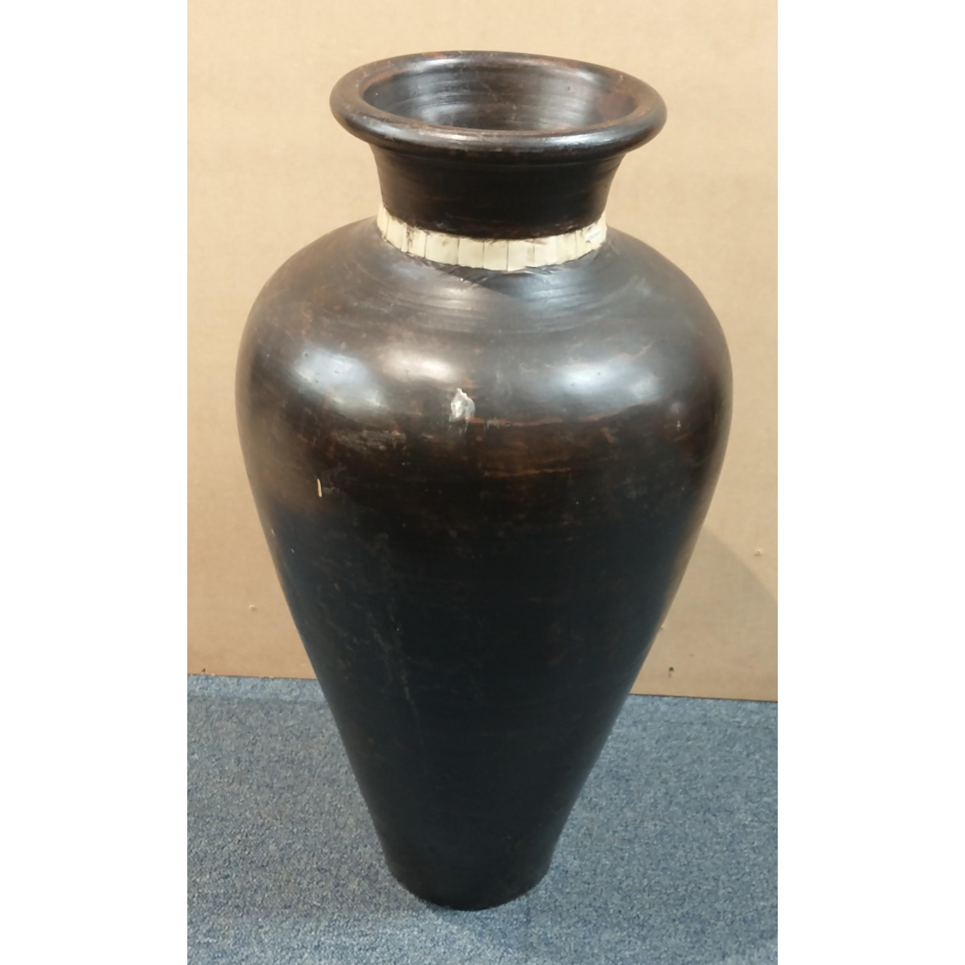 A tall Indian urn style free-standing floor vase. Height 77cm x width 43cm with inlaid collar. A substantial and useful piece.