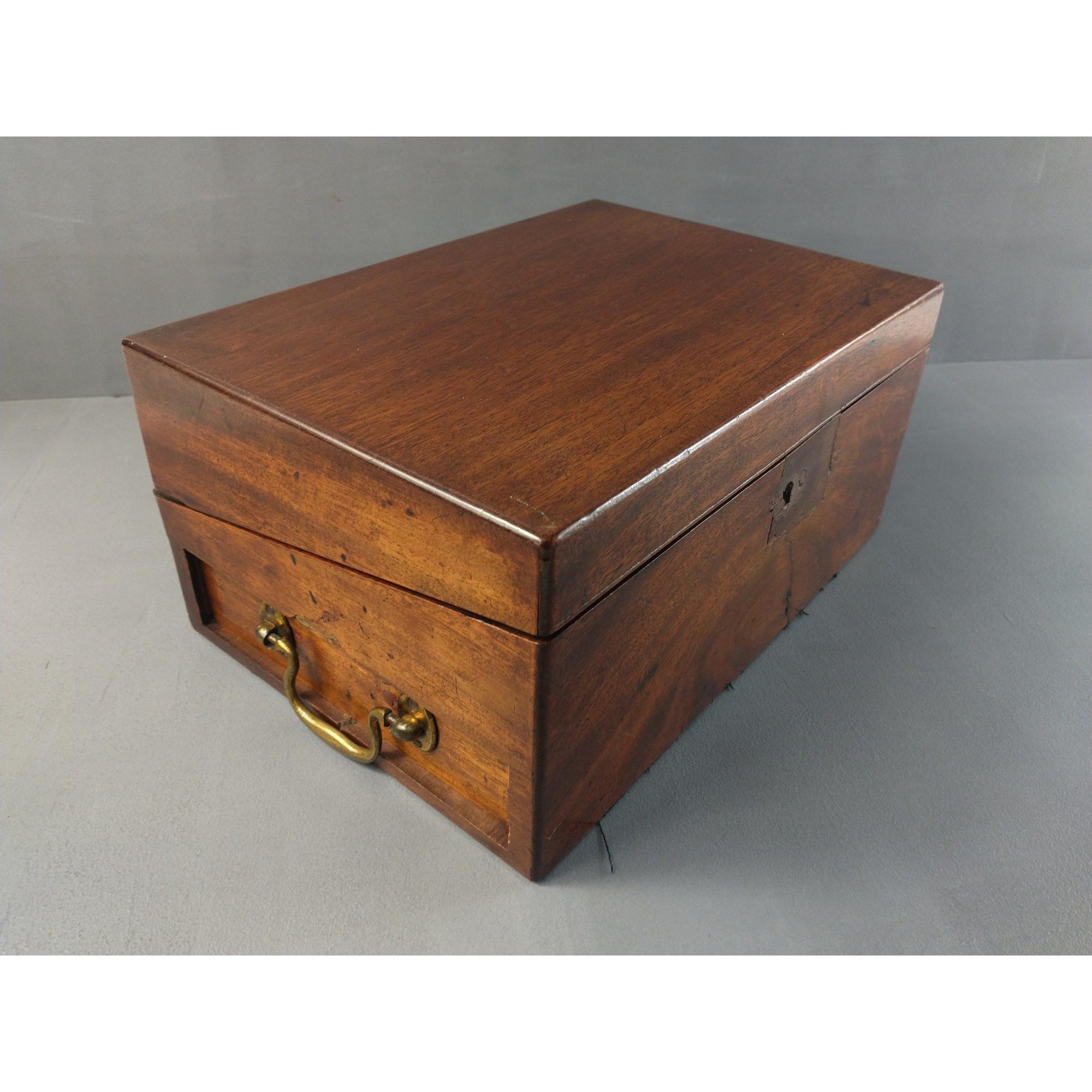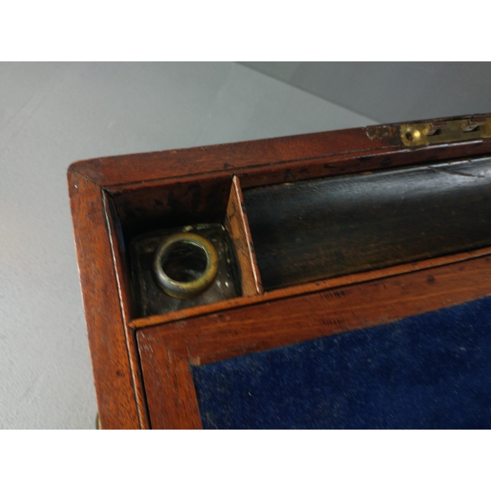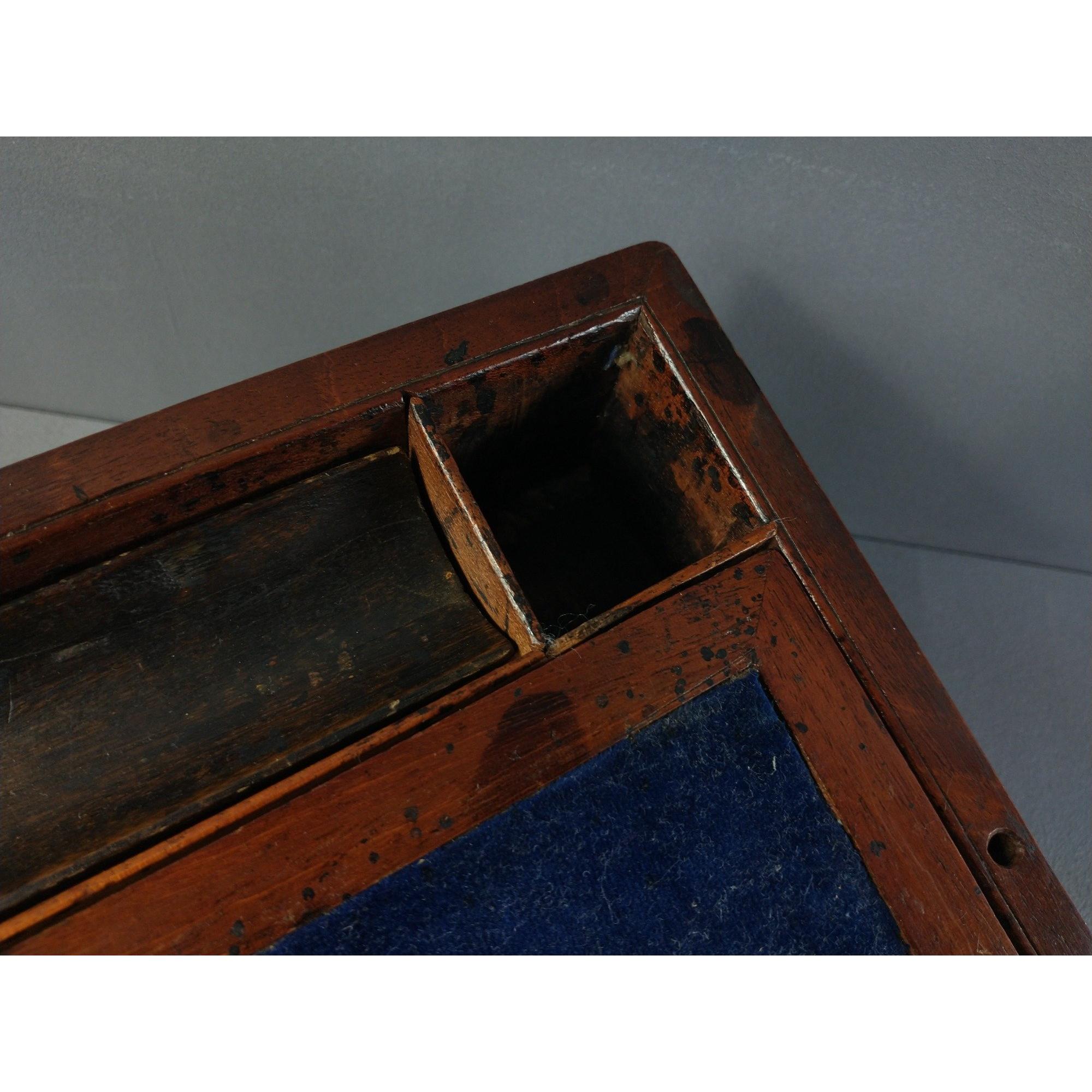 NICE QUALITY! antique stationary writing box with drawer below. Velvet slope in good order. 30cm x 20cm x 14cm approx. Nice example.