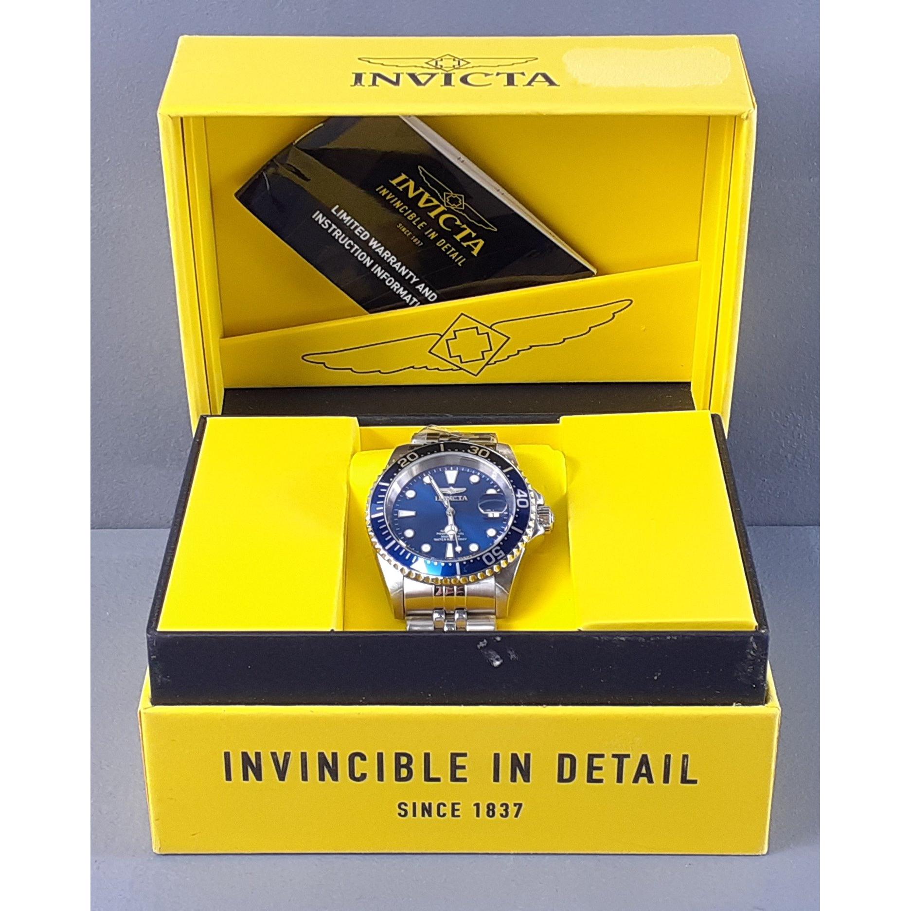 Lovely blue dial / bezel INVICTA gents automatic divers watch on bracelet in box with paperwork. Model 30092. Ticking away well.