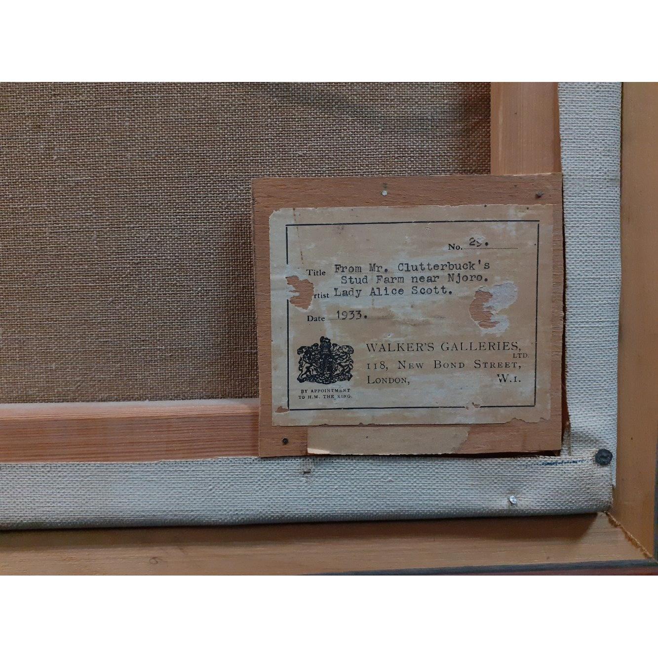 EQUINE INTEREST! Artist LADY ALICE SCOTT framed oil on canvas, entitled Mr Clutterbuck's Stud farm near Njere 1933 - 18" x 14" Label verso - Walker's Galleries 118 Bond Street London