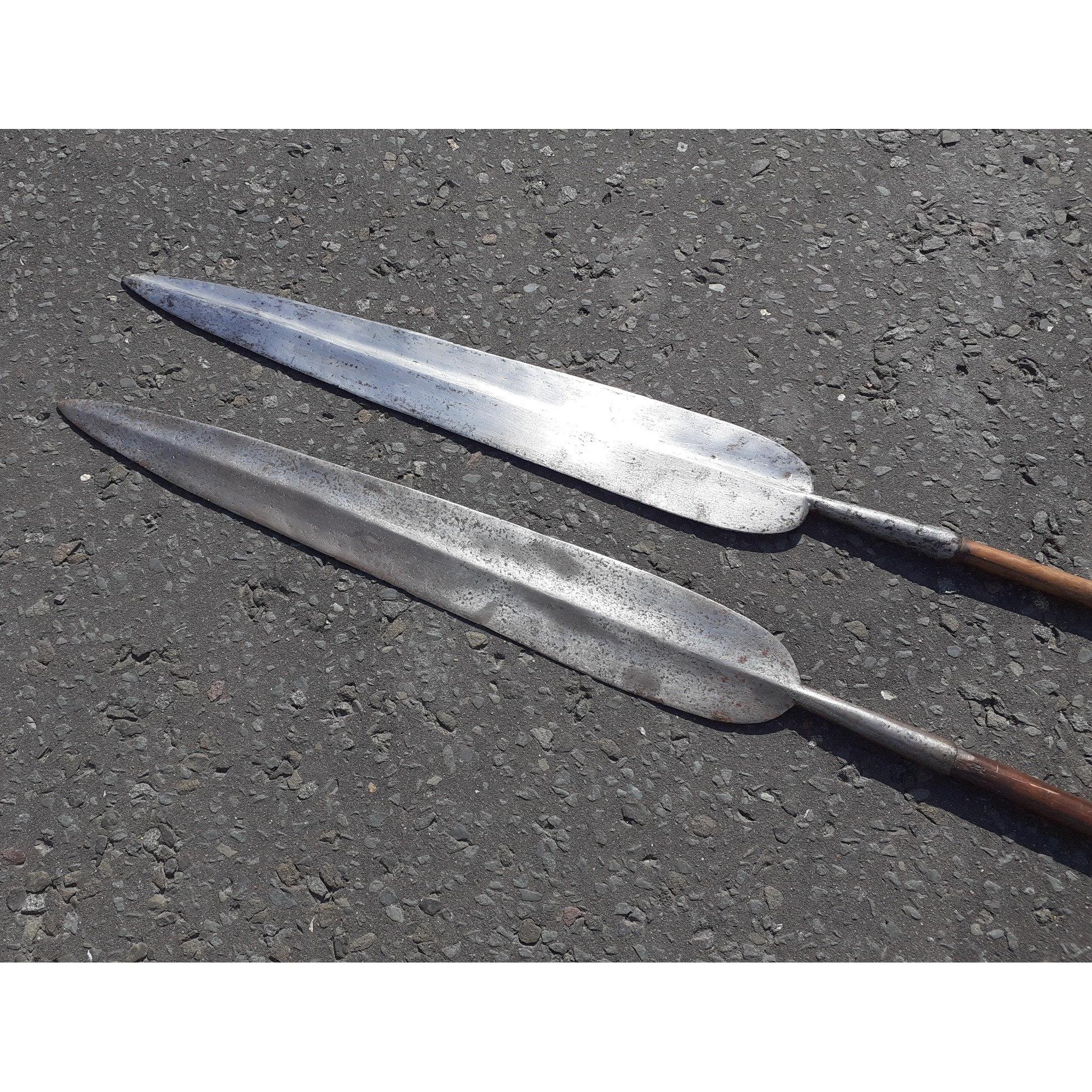 Two vintage African Spears. One metal shafted and the other wooden. Both approx 190cm long with 65cm blades. Approx 2 pieces