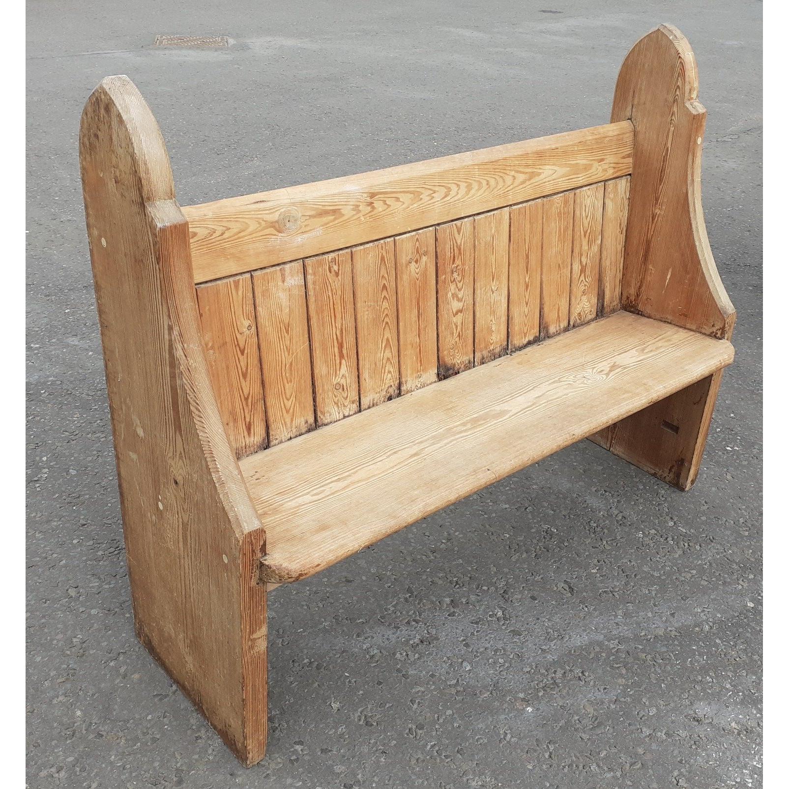 A generous 19th century two seater pine CHURCH PEW with nicely carved features - dimensions 4ft wide x 3.5ft height x 18" depth approx