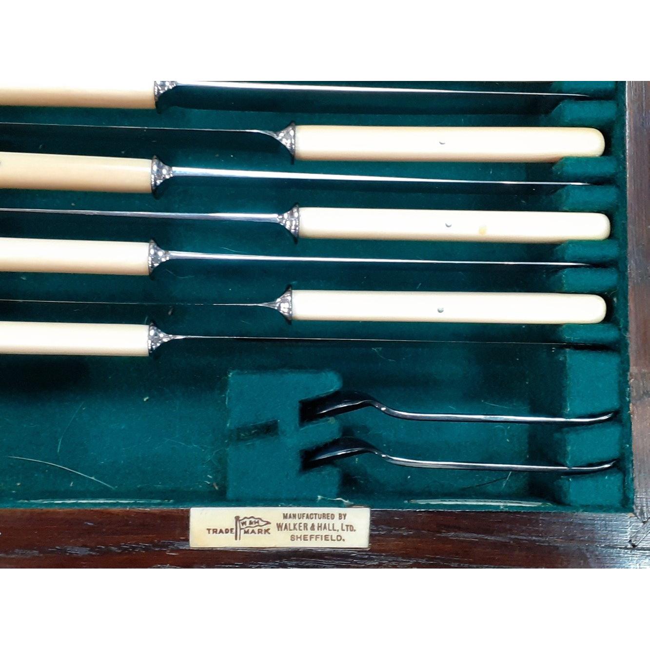 WALKER & HALL tall standing three drawer canteen of cutlery. Some pieces appear to be missing and there are some additions but a truly wonderful set.