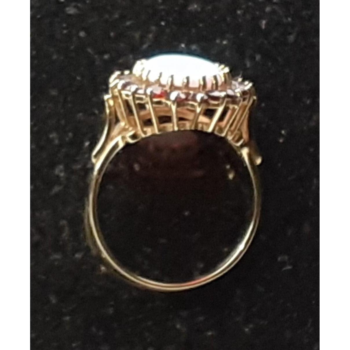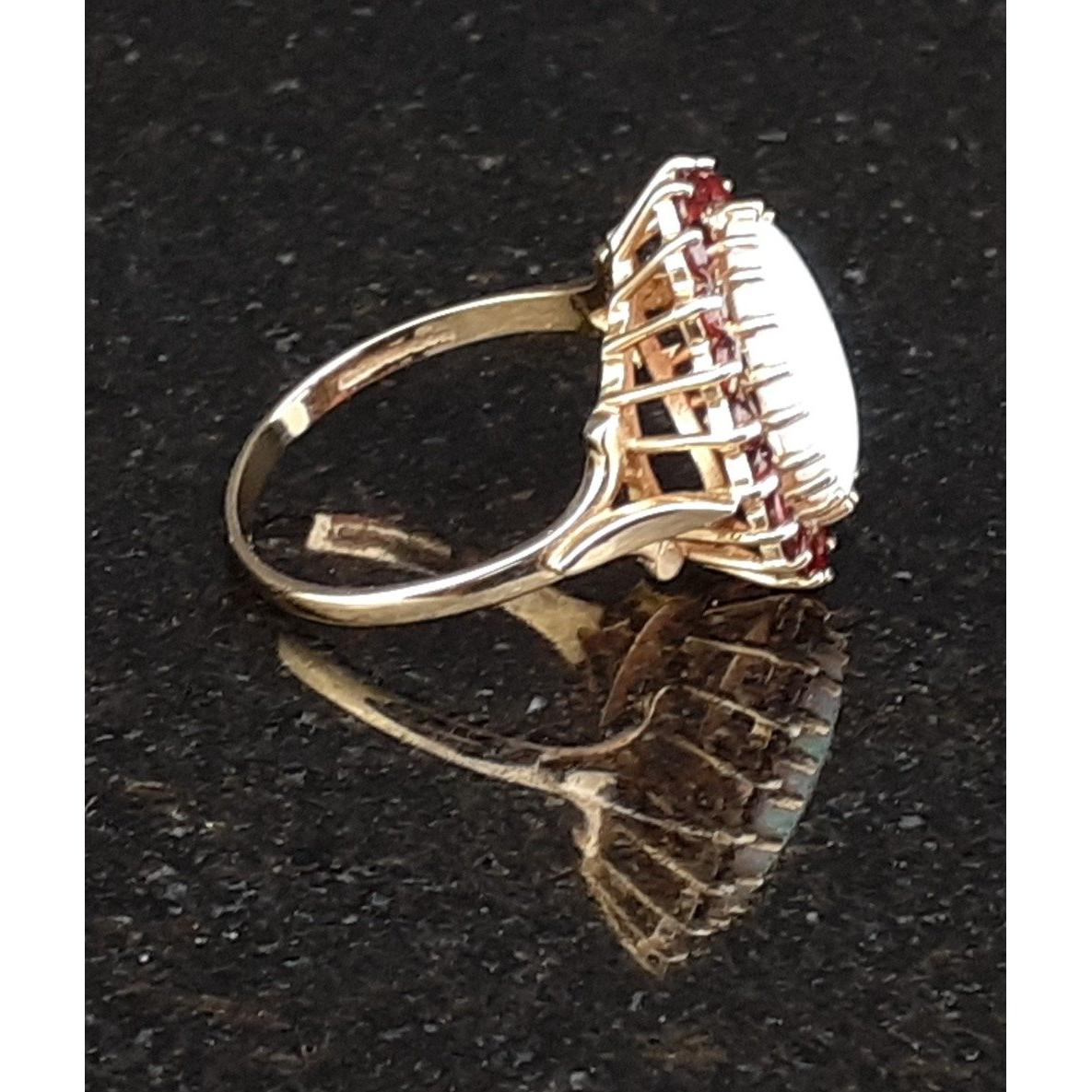 A fully hallmarked dress ring stamped 375 set with a large central oval (15mm approx) and surrounded by red stones. Size R, gross weight 3.61g approxApprox 1 pieces
