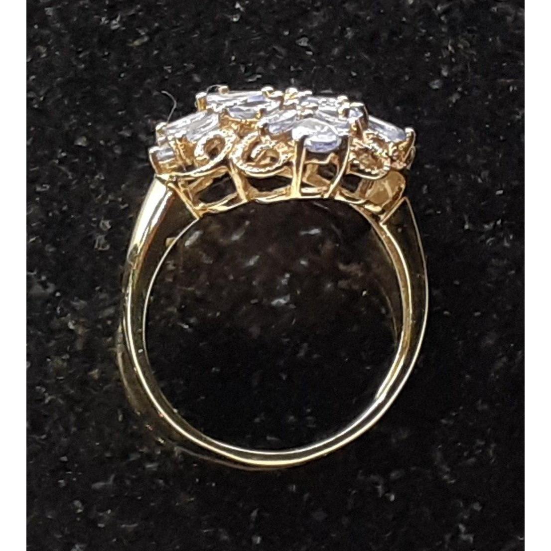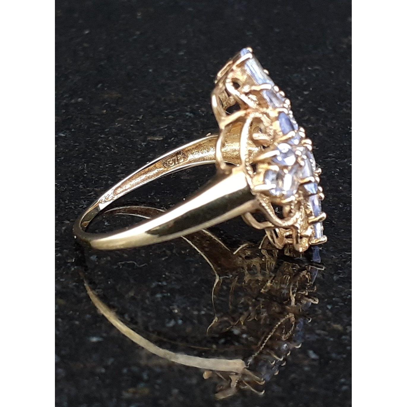 A dress ring stamped 375 set with multiple lilac stones (20mm). Size P, gross weight 3.16g approxApprox 1 pieces
