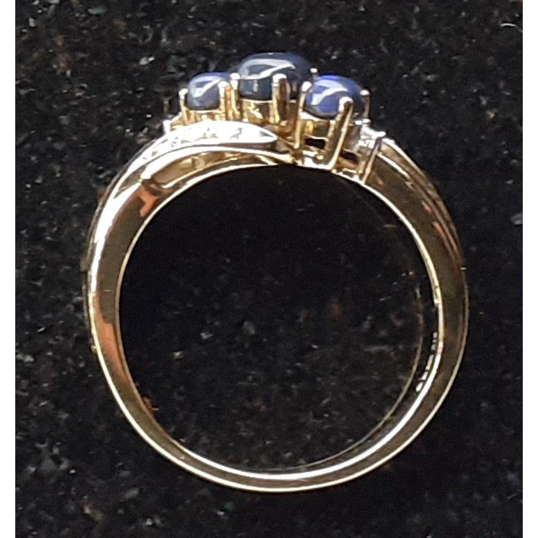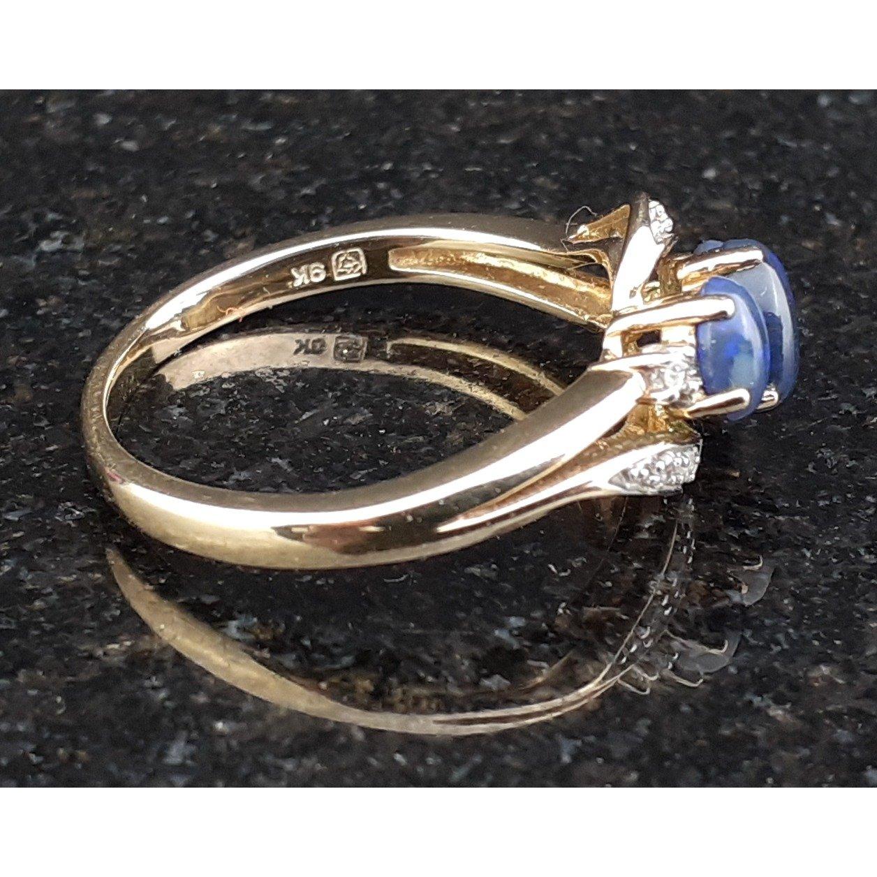 A QVC 375 stamped dress ring set with 3 blue stones and multiple clear chips. Size Q, gross weight 3.20g approxApprox 1 pieces