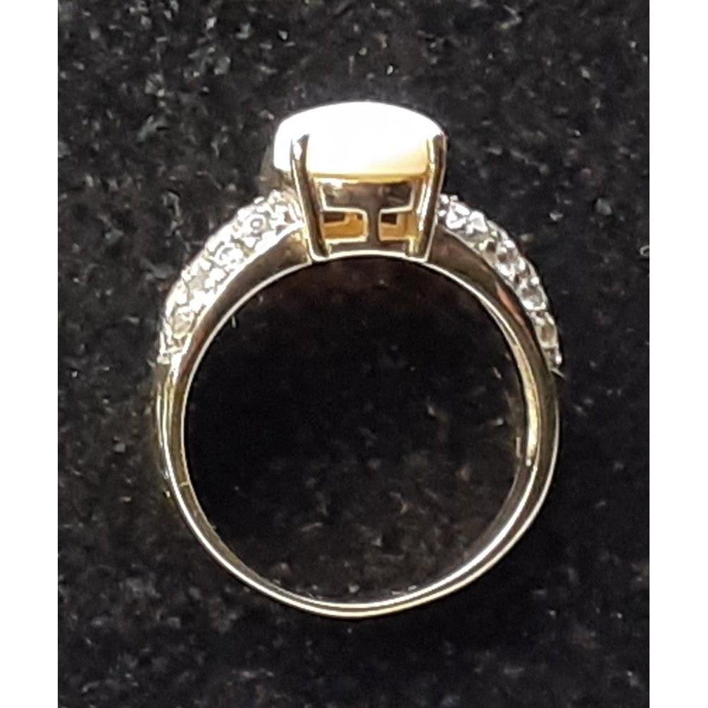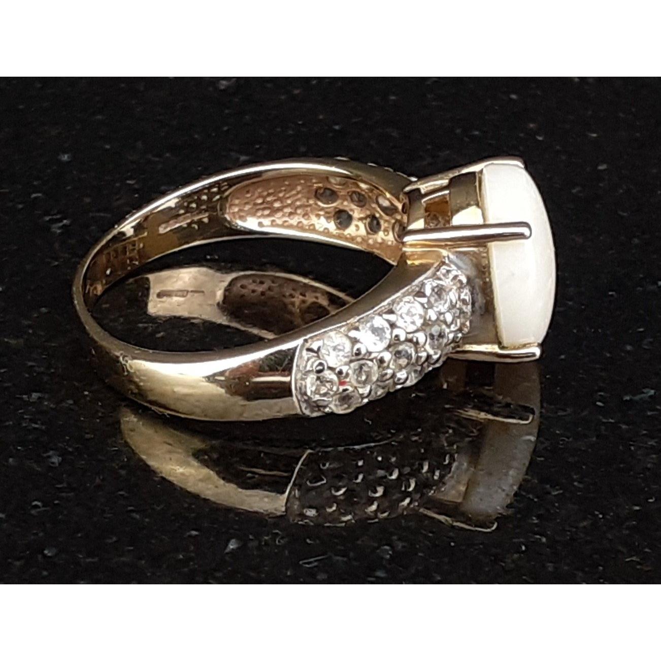 A 375 stamped ring with central opal (10mm approx) and clear stones on the shoulders. Size Q, gross weight 4.05g approxApprox 1 pieces