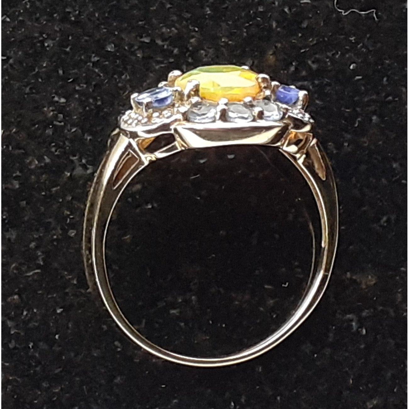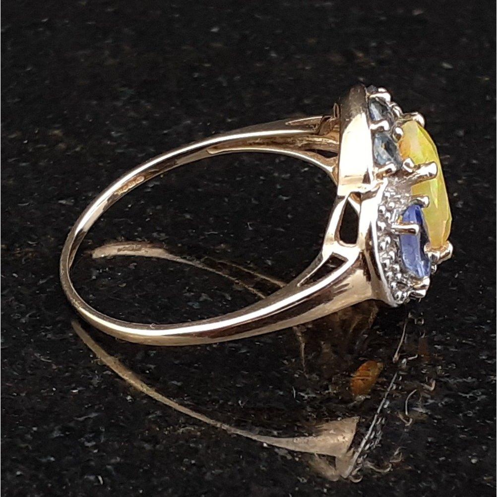 A 375 stamped dress ring set with an unusual opal and 8 blue stones. Size S, gross weight 2.65g approxApprox 1 pieces