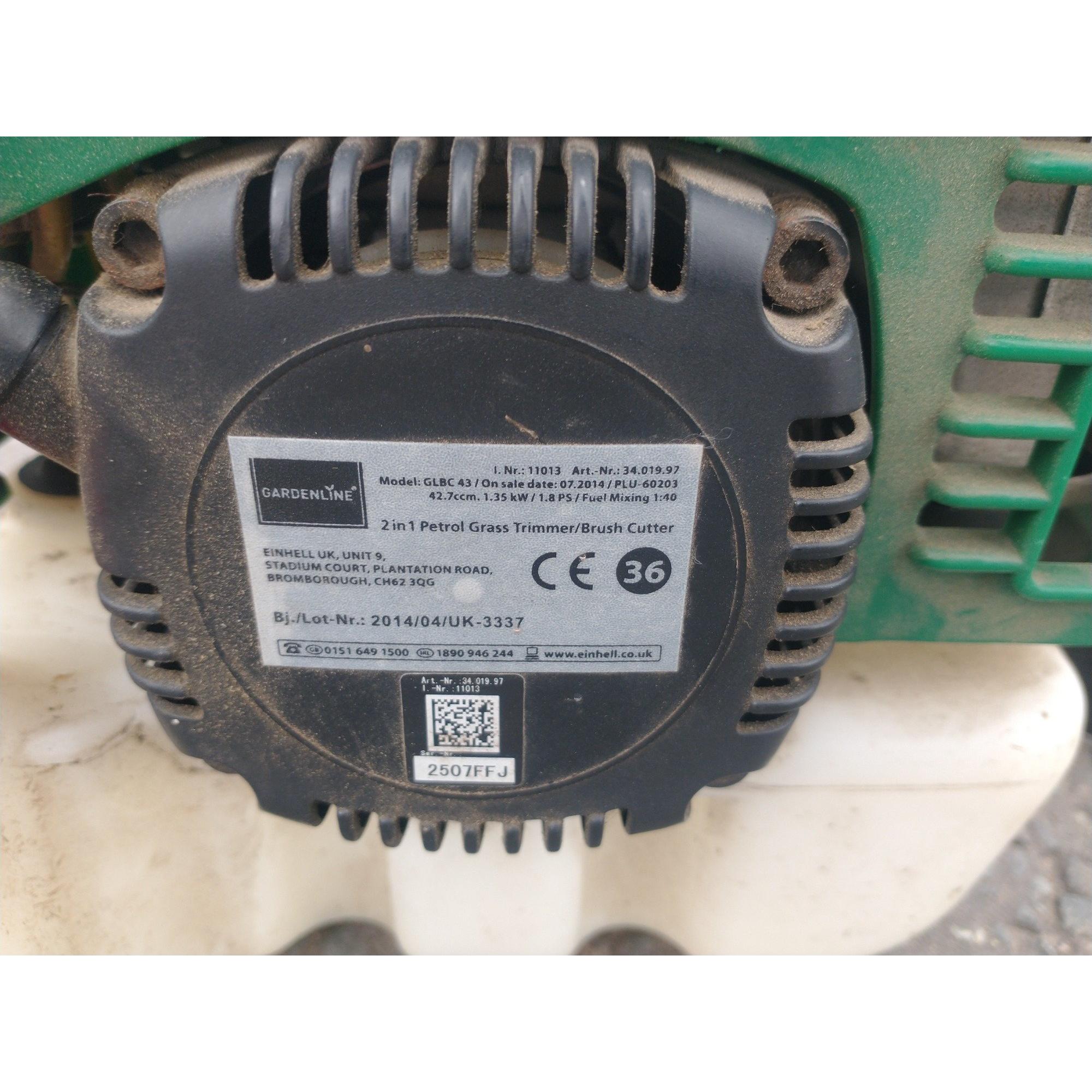 A GARDENLINE petrol strimmer with reel of strimmer cable and shoulder strap