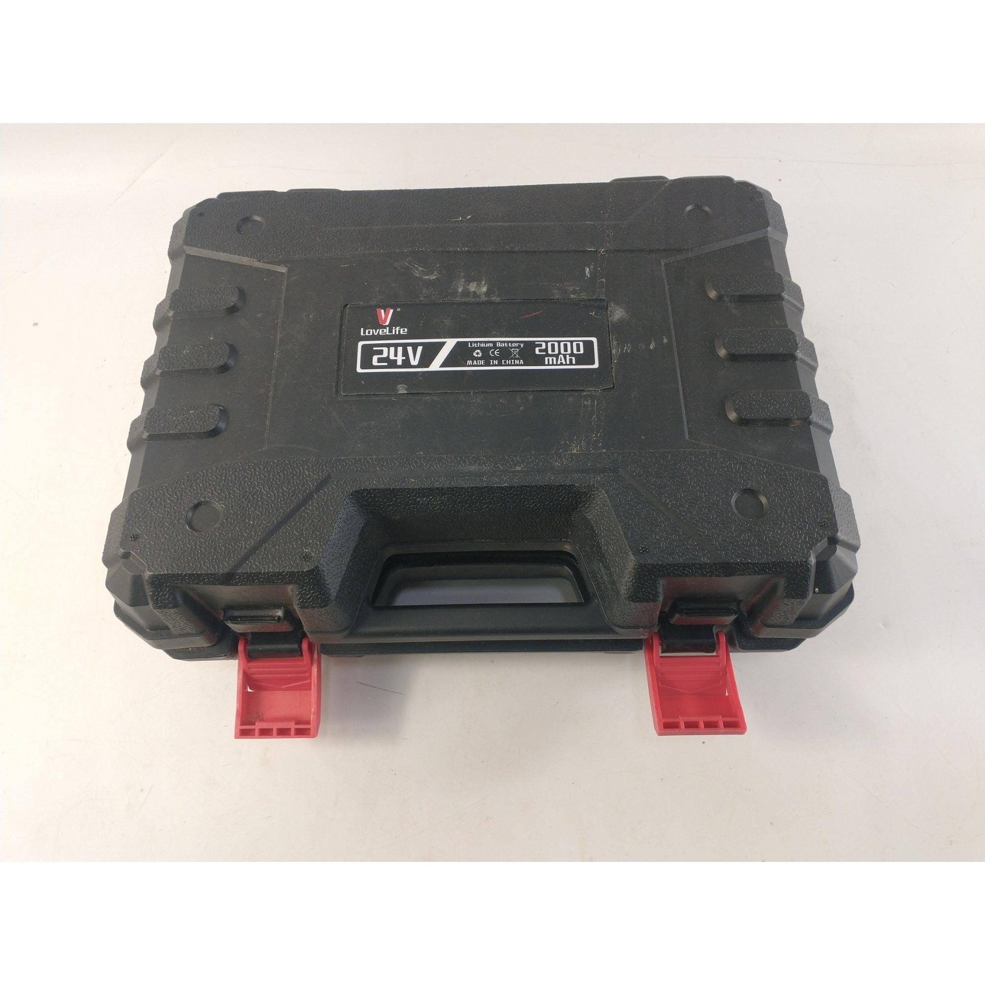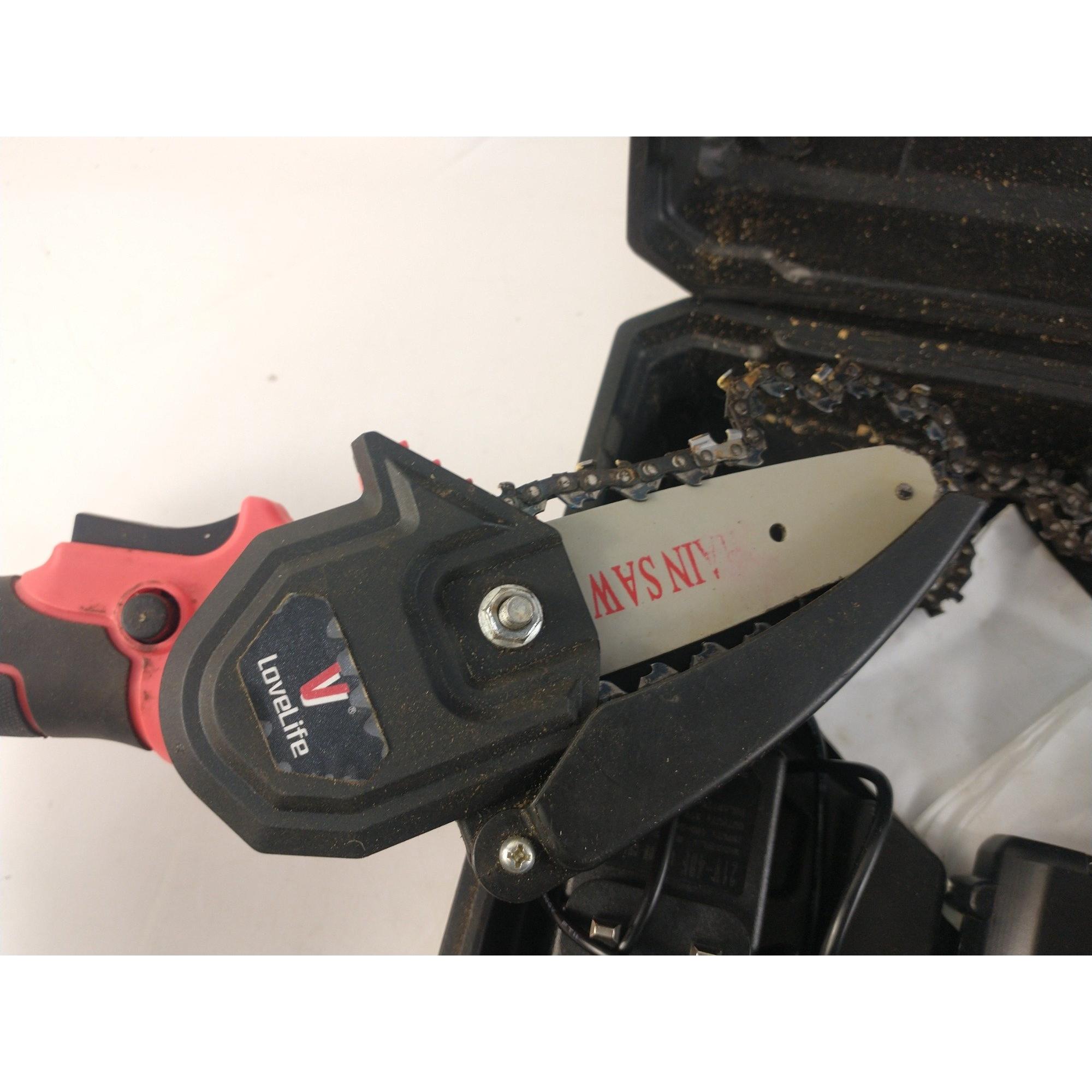 Lovelife 2000 Mah hand held chain saw in case with battery etc. Chain loose.
