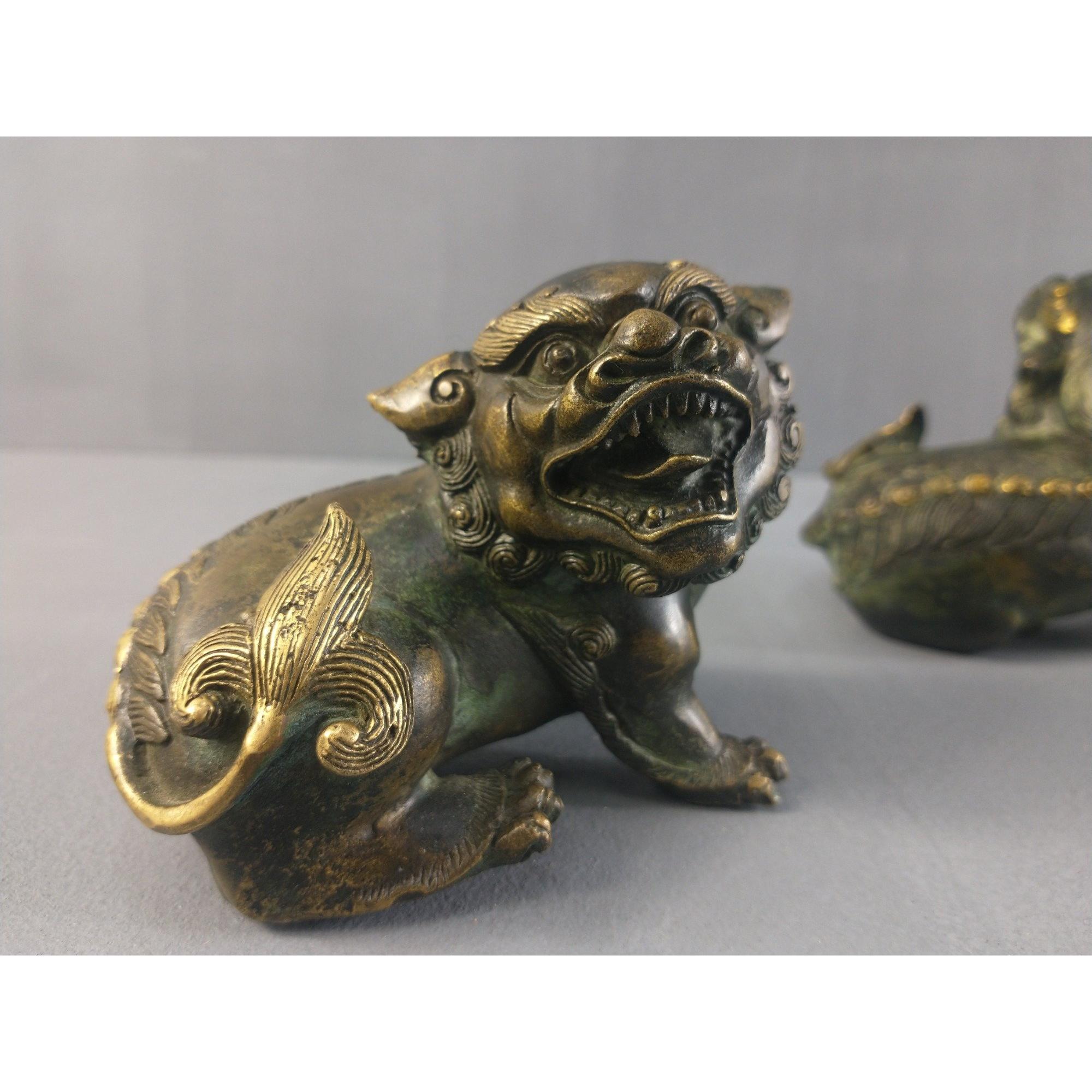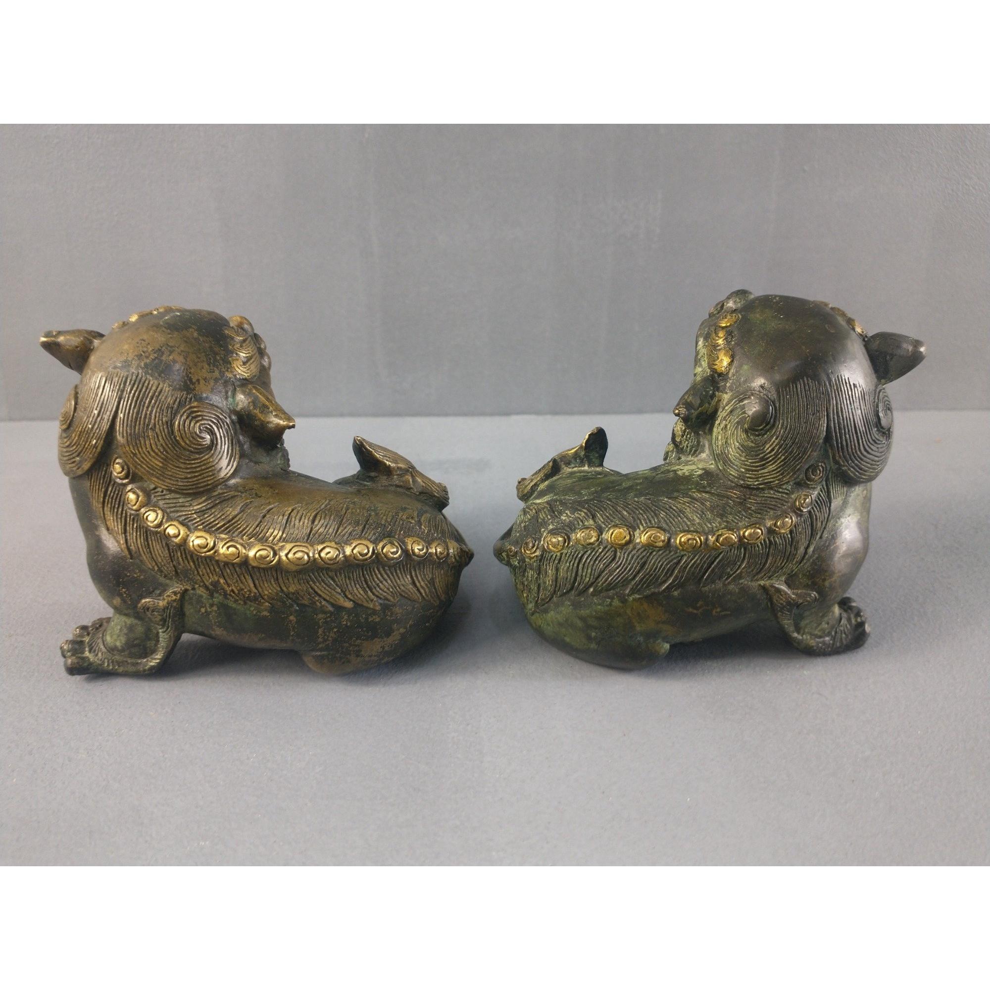 A lovely pair of small bronze FOO DOGS. Nicely detailed, each 9cm approx. Approx 2 pieces