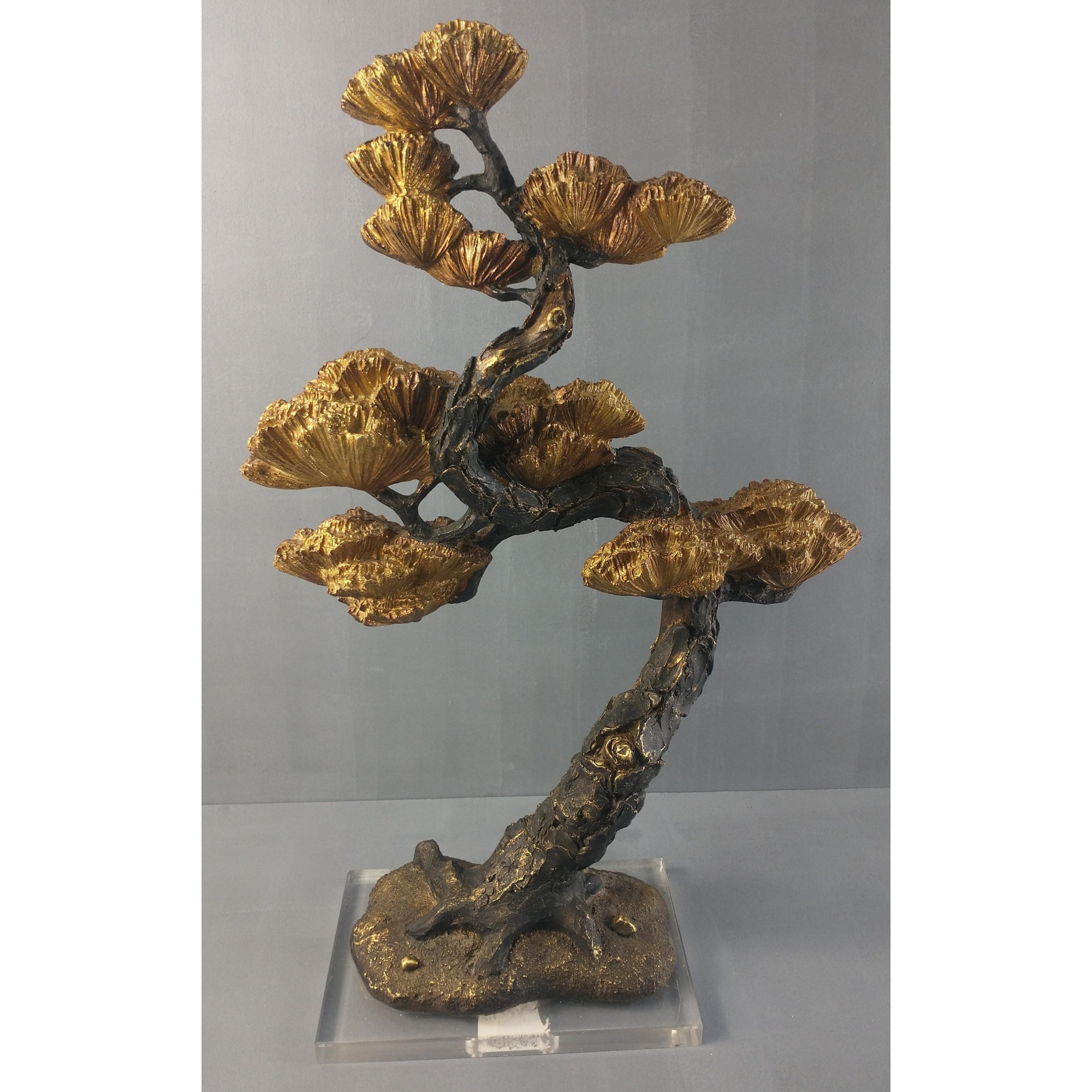 A most unusual decorative item resembling a petrified tree with gold highlights on a Perspex plinth. Stands approx 48cm highApprox 1 pieces