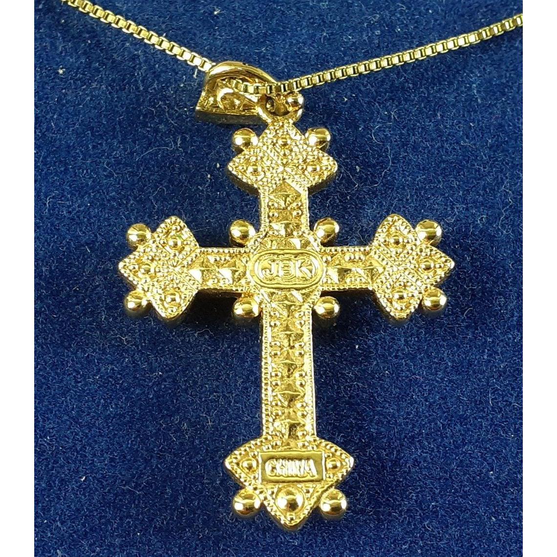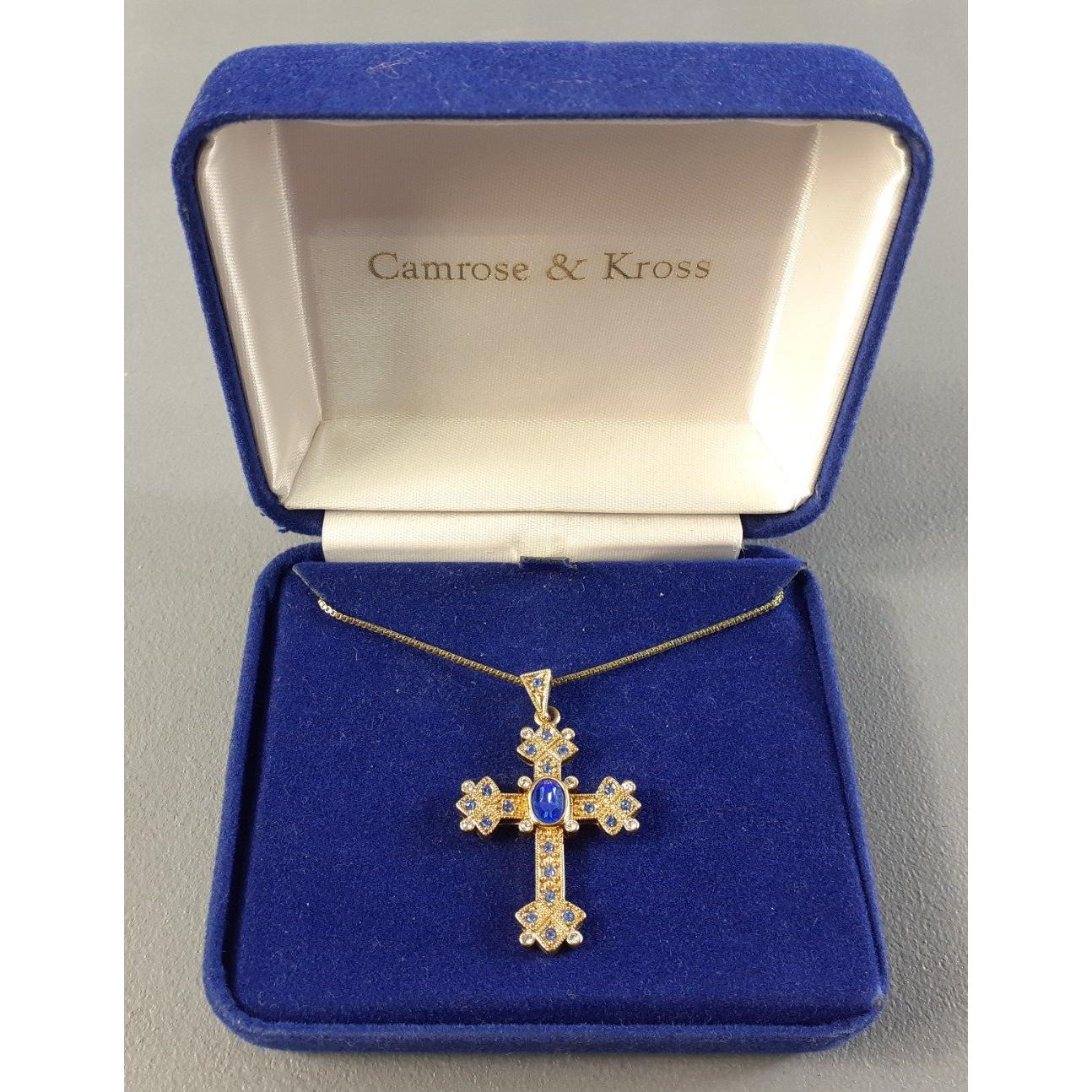 CAMROSE & KROSS. Pretty gilt replica Jacqueline Kennedy collection cross on gilt chain.