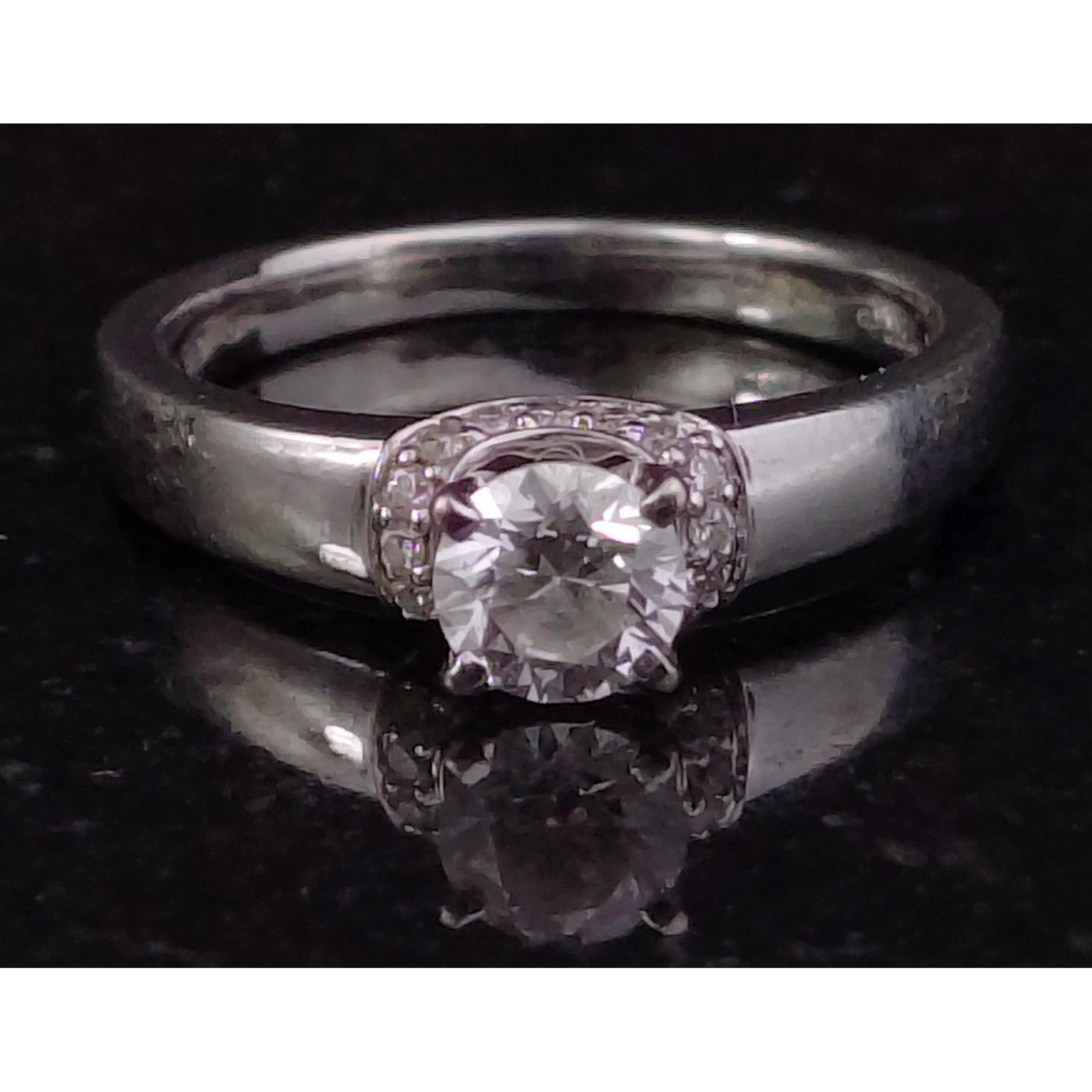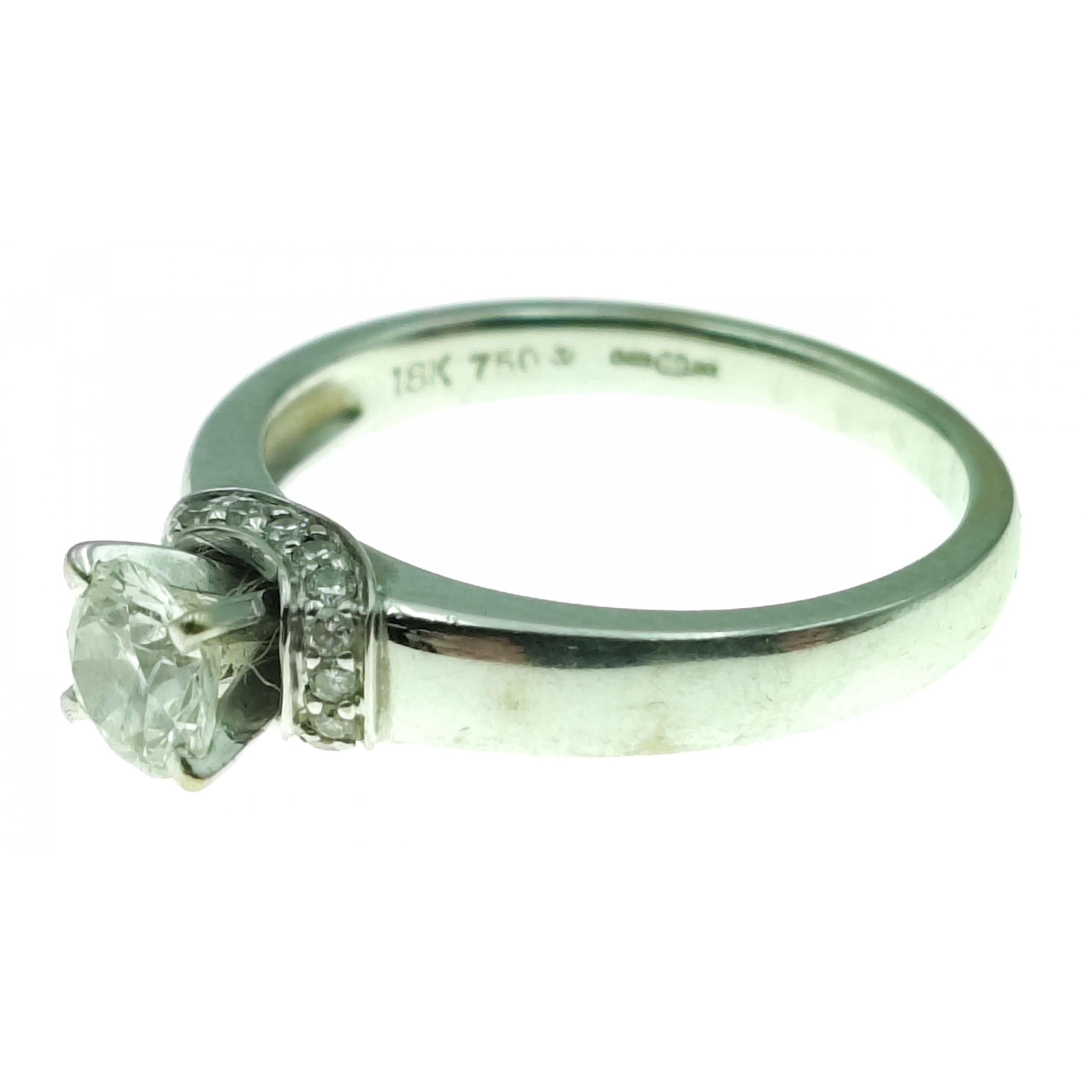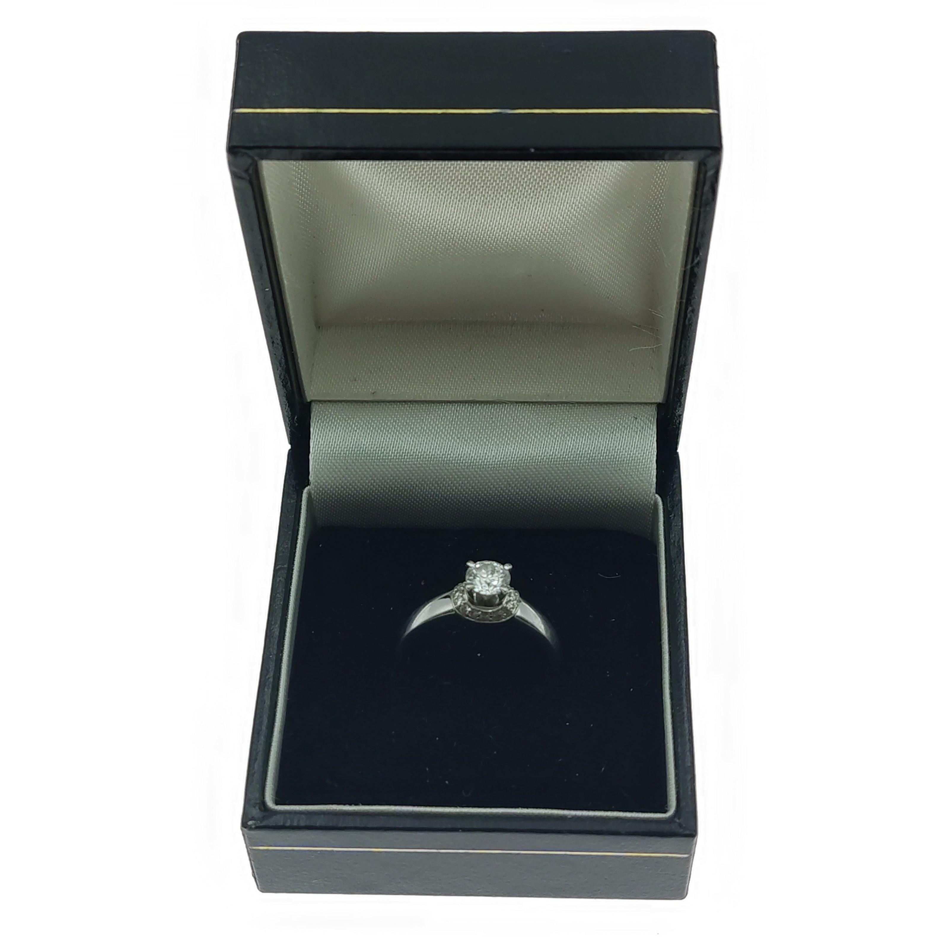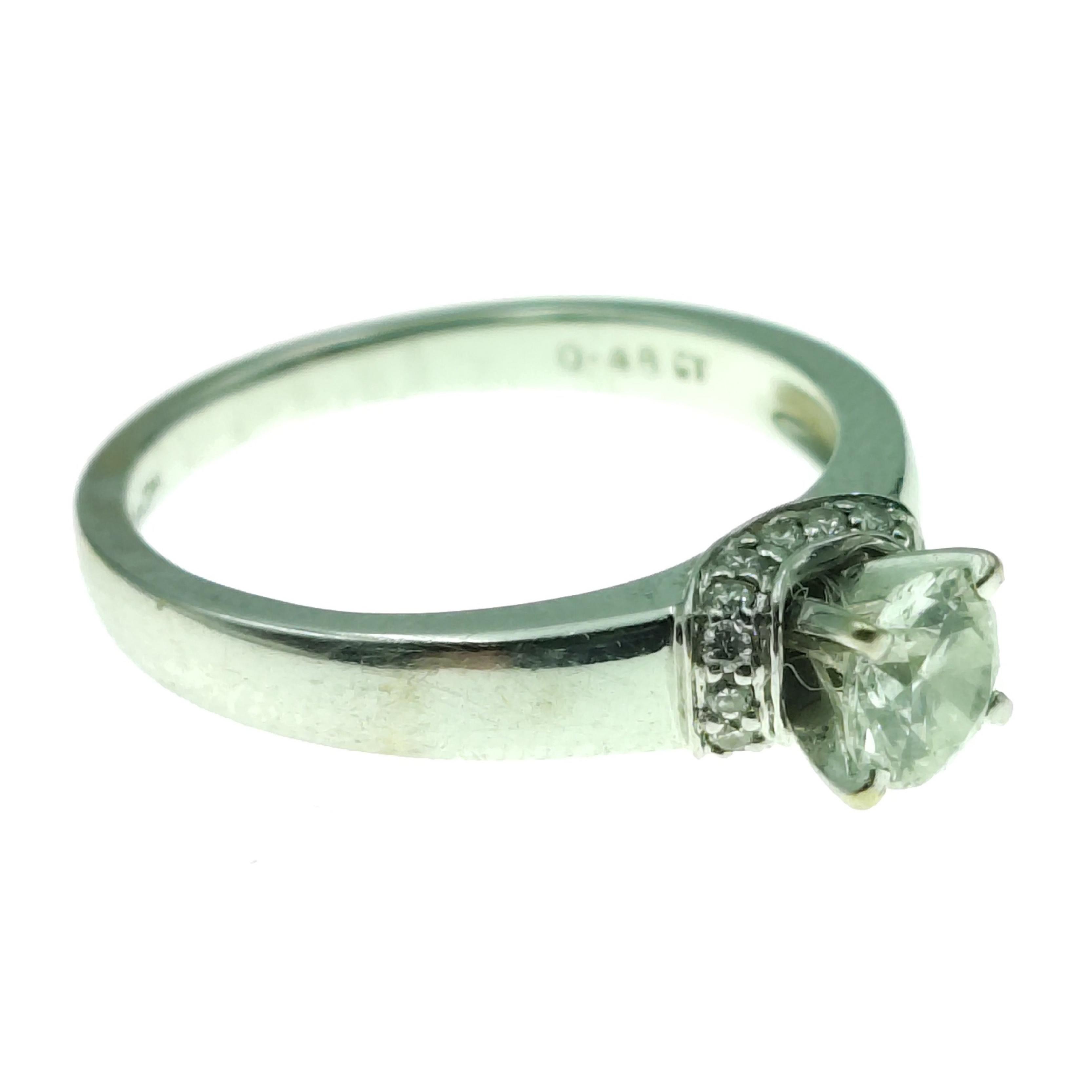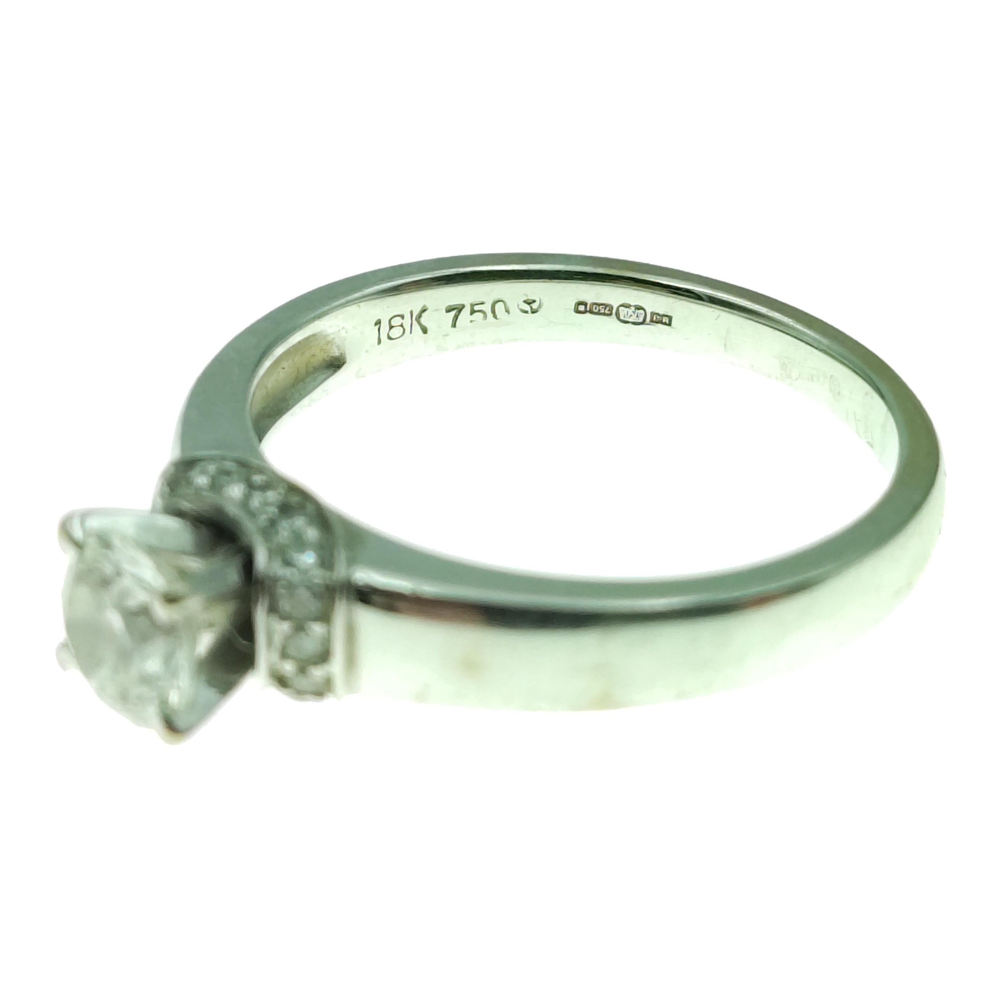 A stunning 0.48 carat centre diamond ring with 16 shoulder diamonds set in 18k white band. Size J/K, gross weight 3.45g approx. A truly lovely ring bought from quality Edinburgh retailer around ten years ago, cost over £1500.