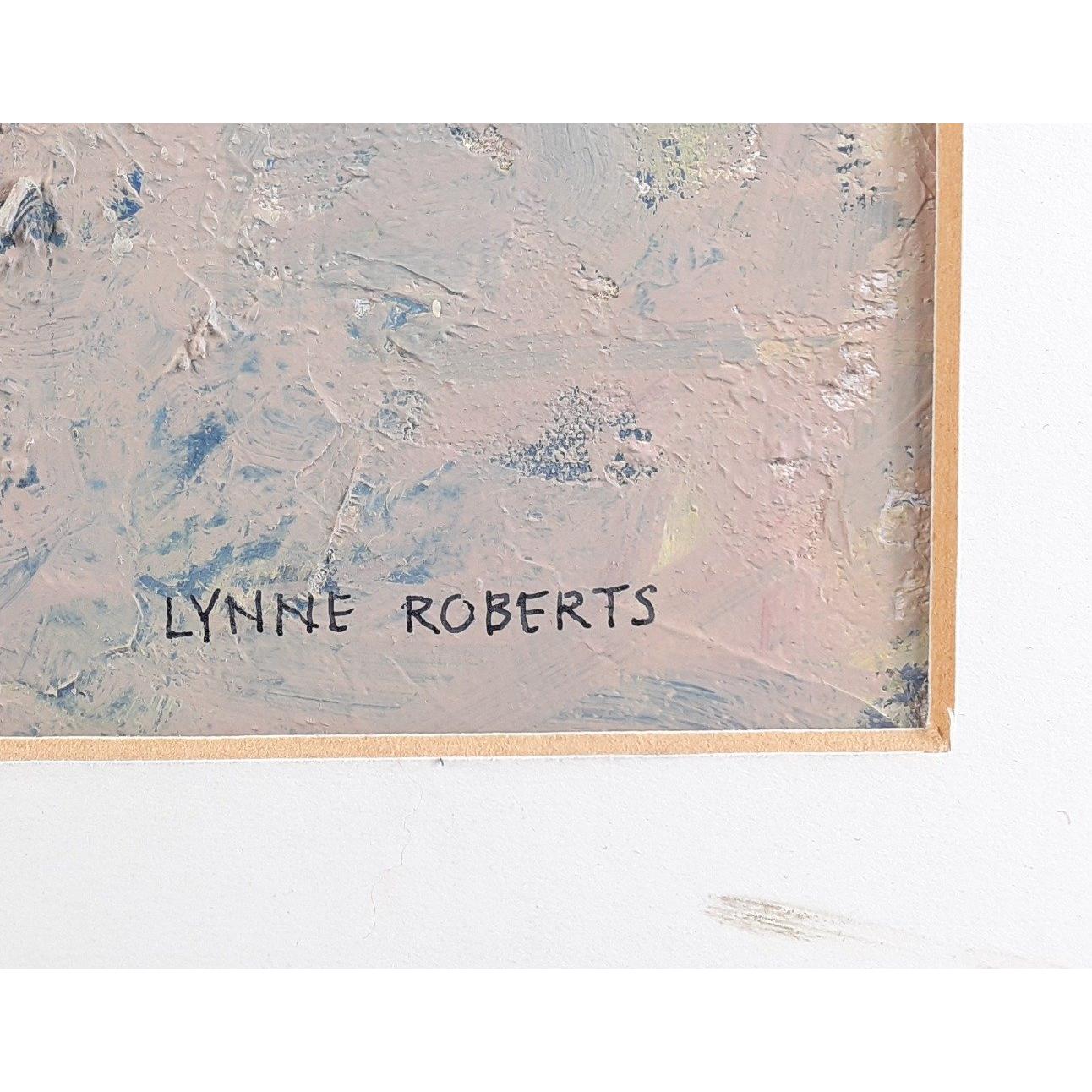 LYNN ROBERTS. Acrylic on canvas. Accomplished Highland Harbour scene with trawler. Loose in frame 55cm x 60cm approx.