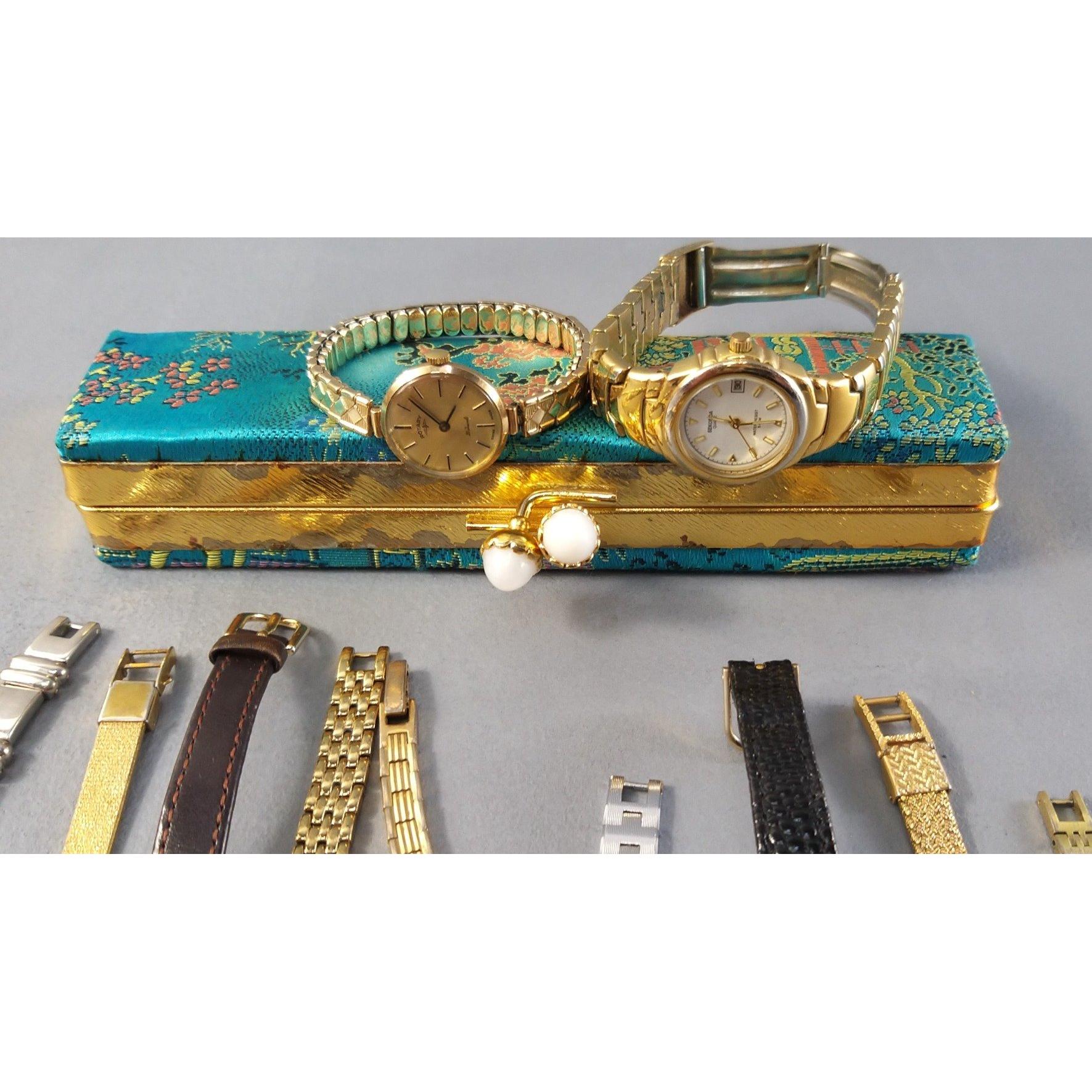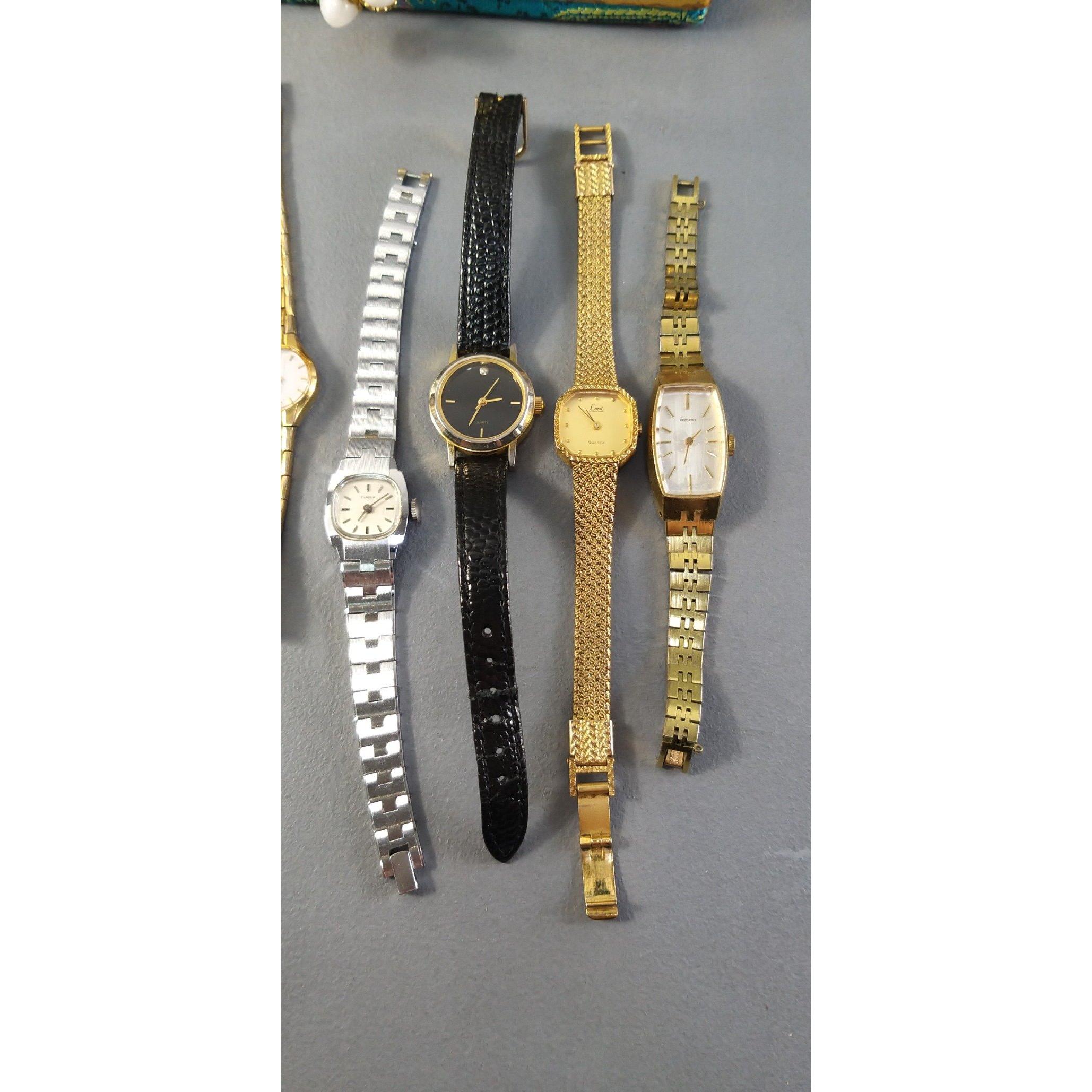 Eleven ladies watches including by ROTARY, ACCURIST, CITIZEN, SEKONDA and SEIKO. Come within a Chinese silk clutch bag.Approx 1 pieces