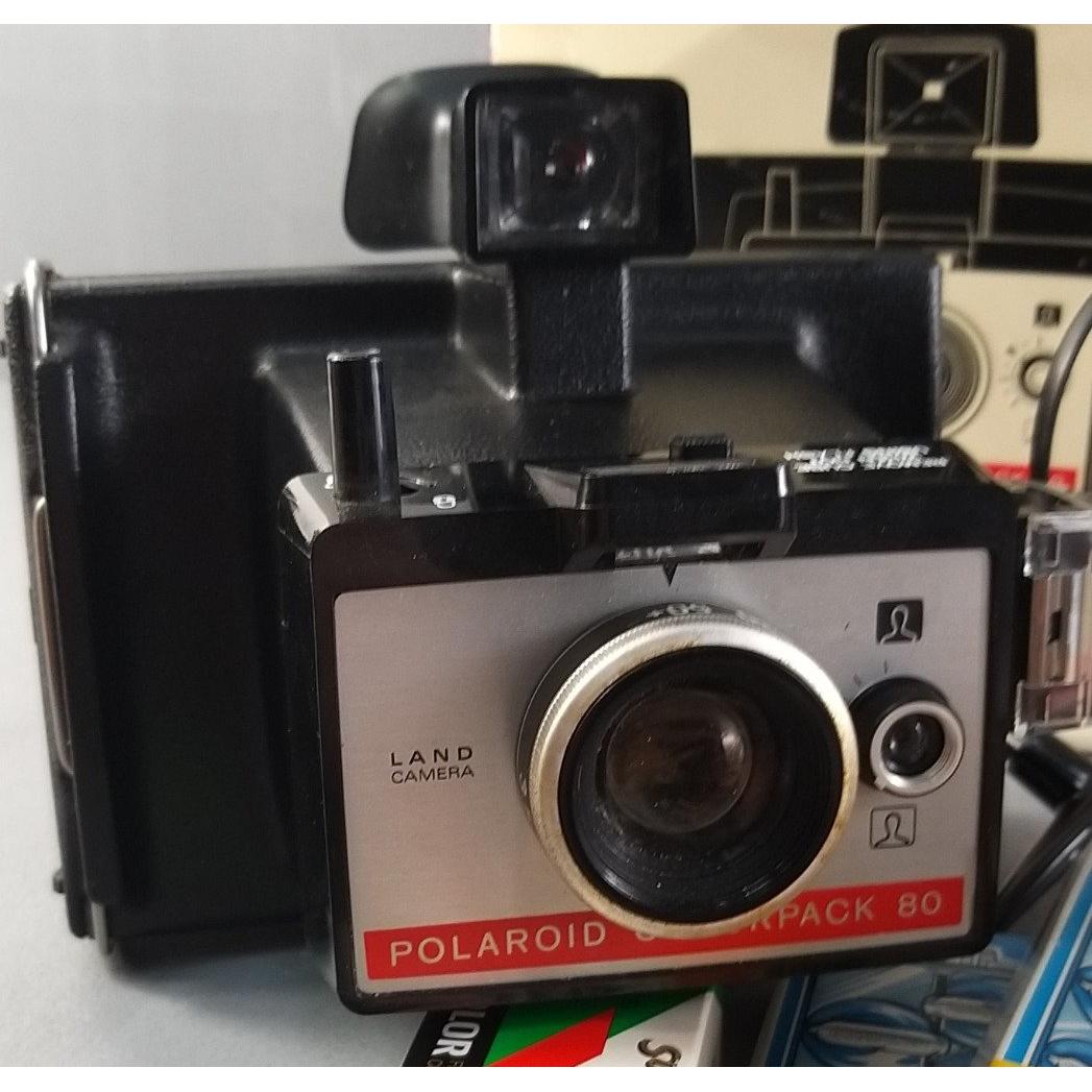 A POLAROID COLORPACK 80 camera in original box with instructions, plus a KODAK 66 MODEL III camera in original box and 2 boxes of Sylvania Flip Flash.