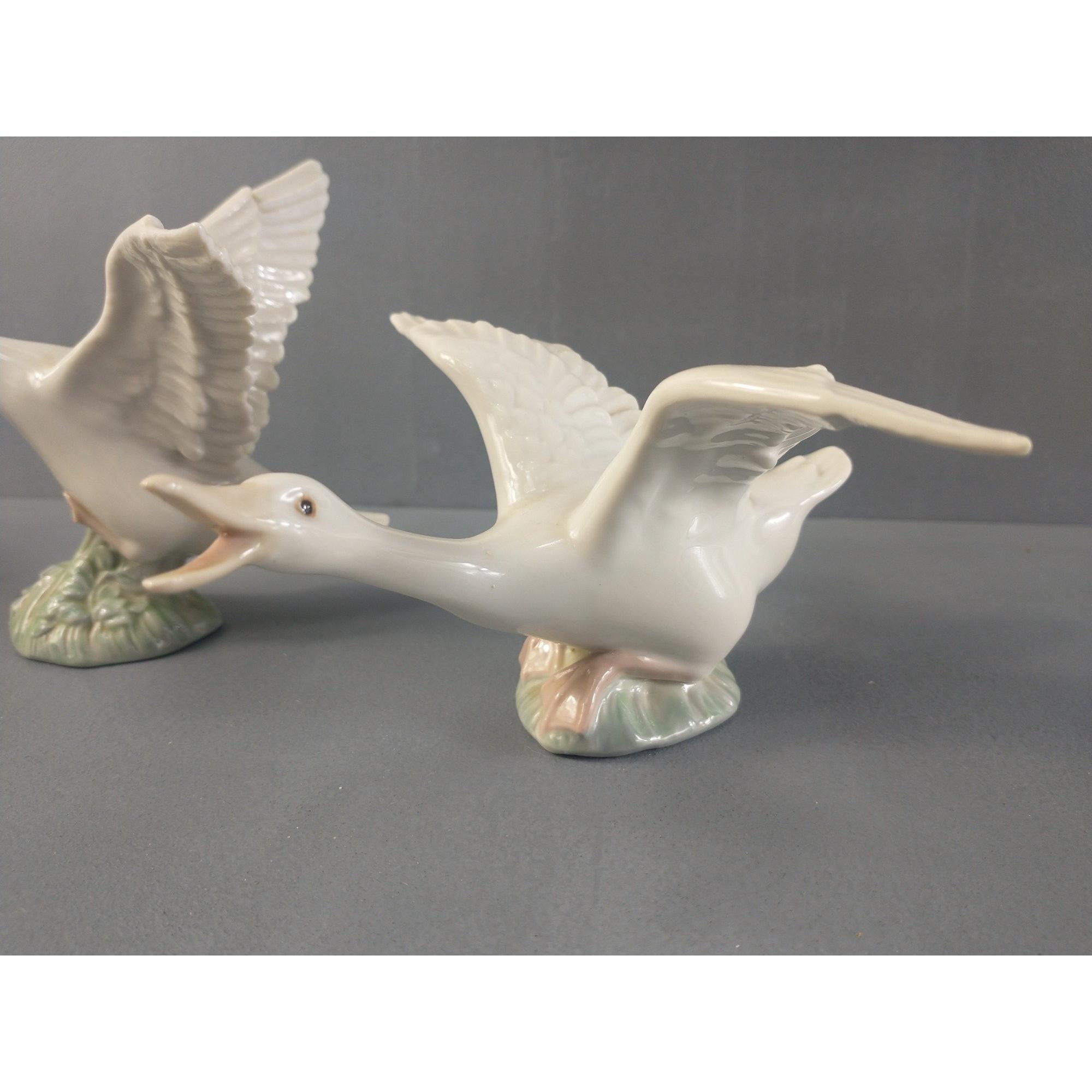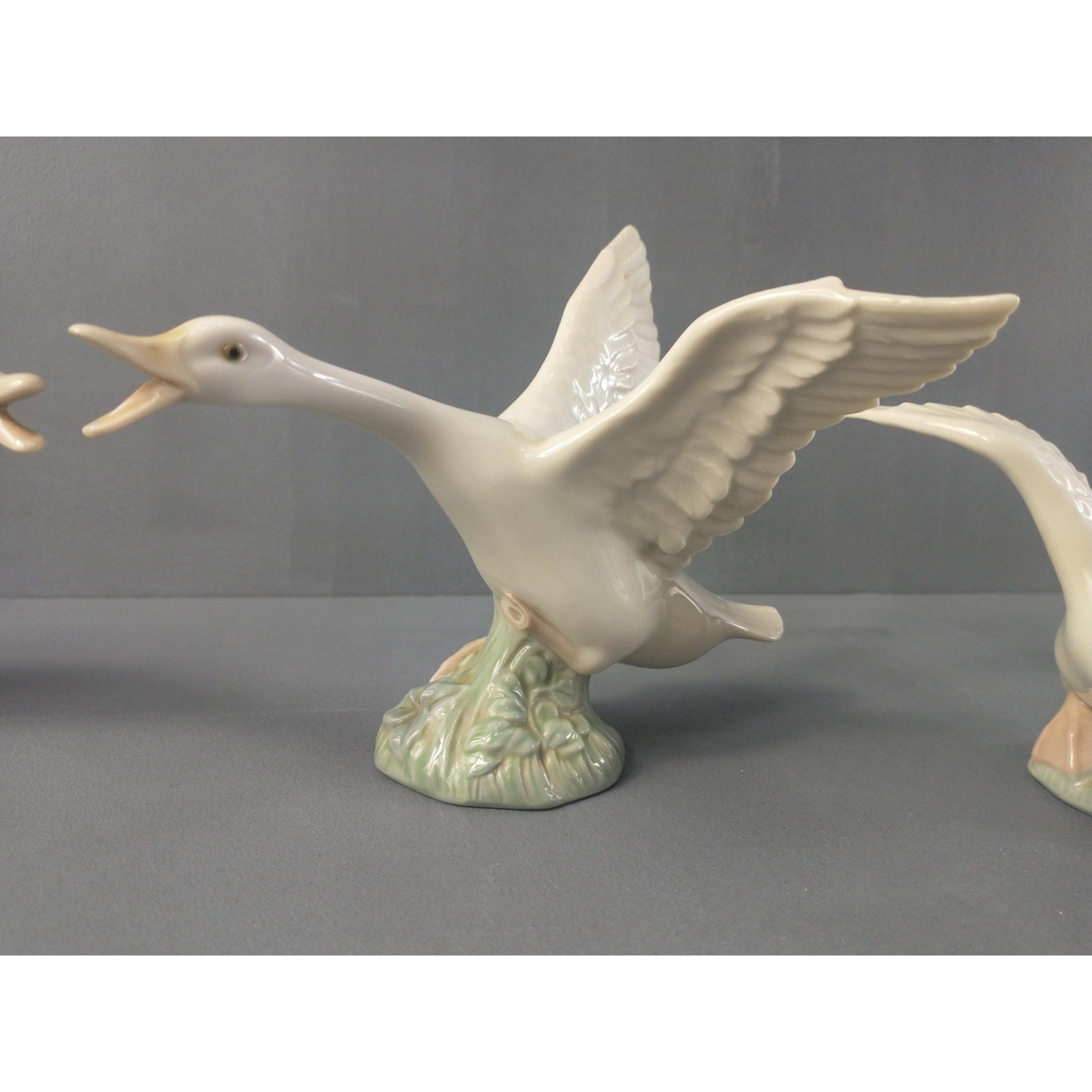 Three LLADRO geese (12cm tall approx). Two with no damage, one missing footApprox 3 pieces