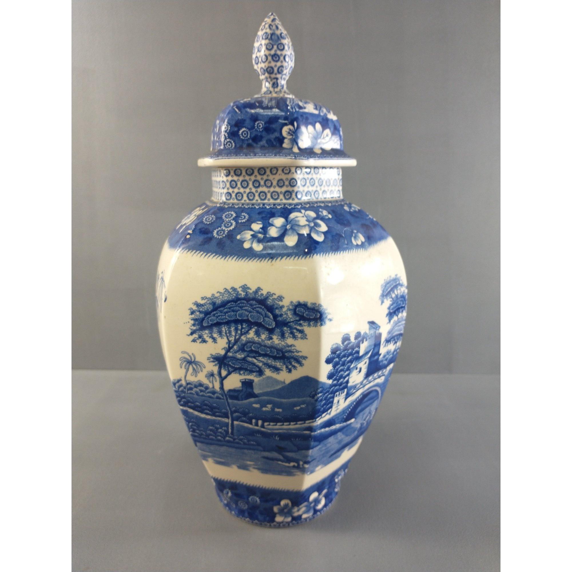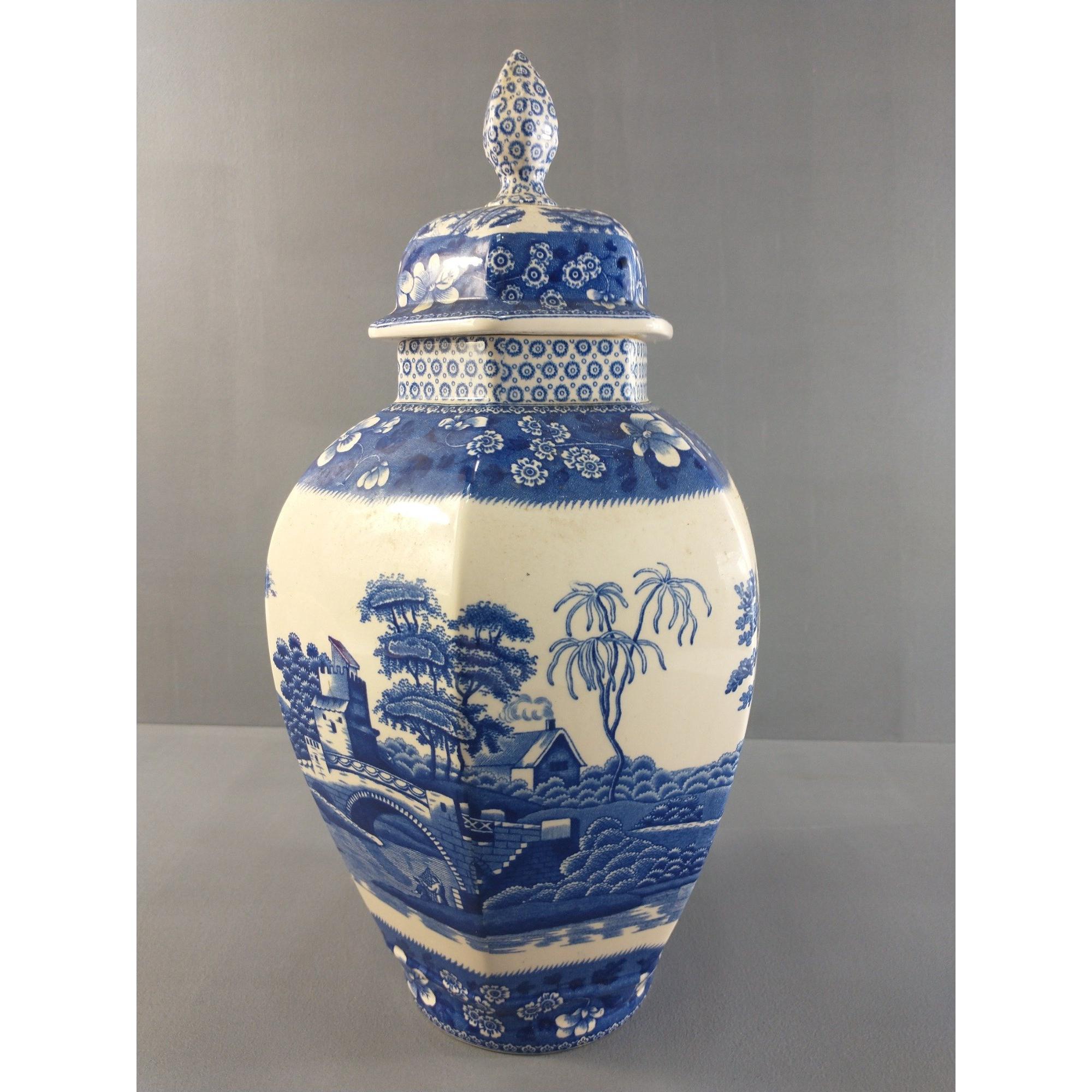 A large SPODE Blue Tower pattern ginger jar standing 34cm approx