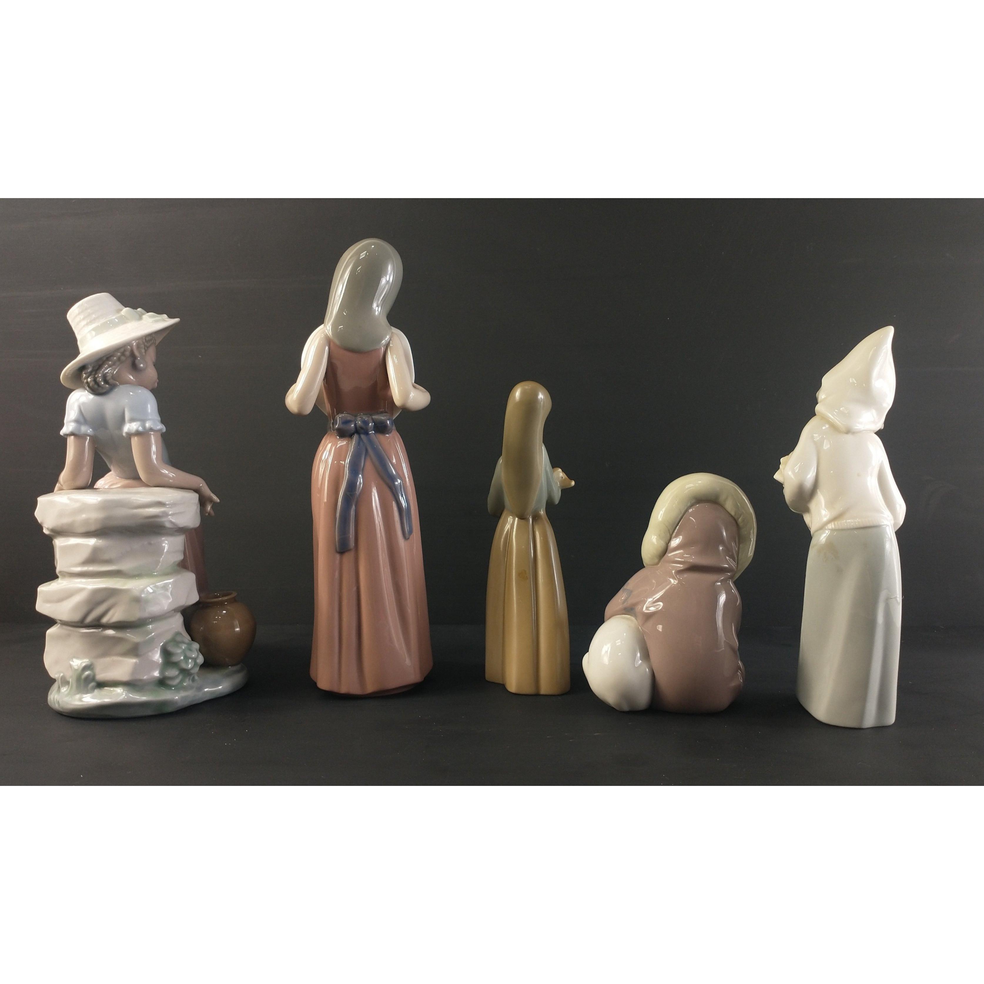 A LLADRO Daiso 1982 figurine (23cm approx), of a girl in a hat, a LLADRO girl holding a hat, a LLADRO Inuit child with polar bear cub, a LLADRO girl with pig and also one with a chickenApprox 5 pieces