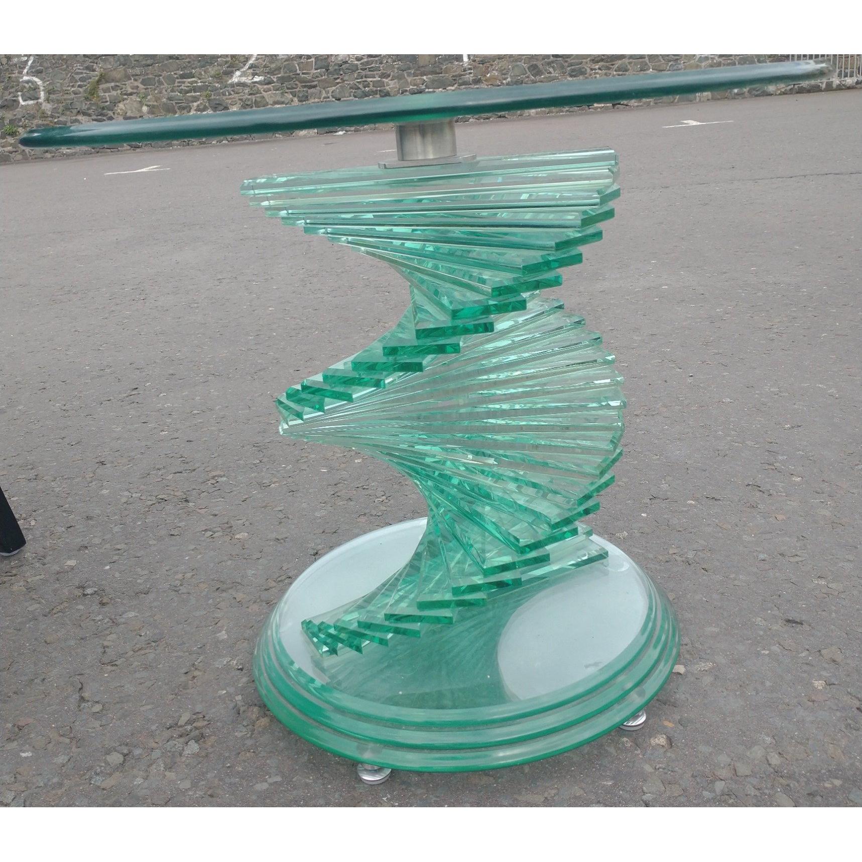 SUBSTANTIAL! An UNUSUAL RETRO helix style stand solid glass side table 60cm tall x 50cm diameter