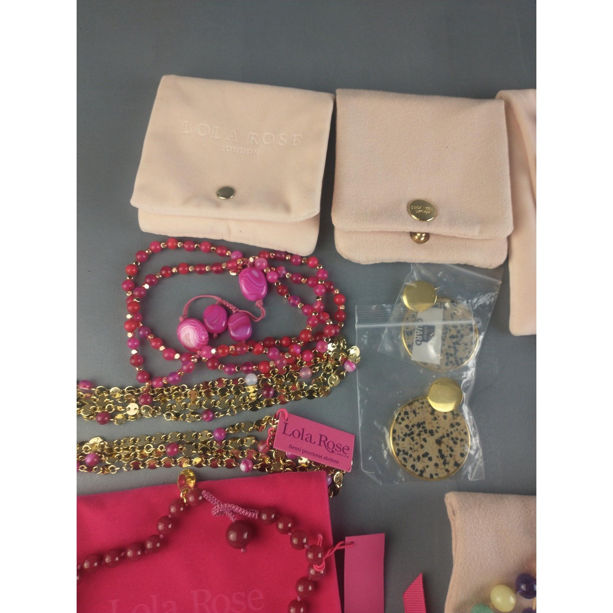 DESIGNER LOLA ROSE A Collection of hardstone jewellery to include beaded pendant necklaces, etc, with Lola Rose pouches. Six soft pouches with contents.Approx 6 pieces
