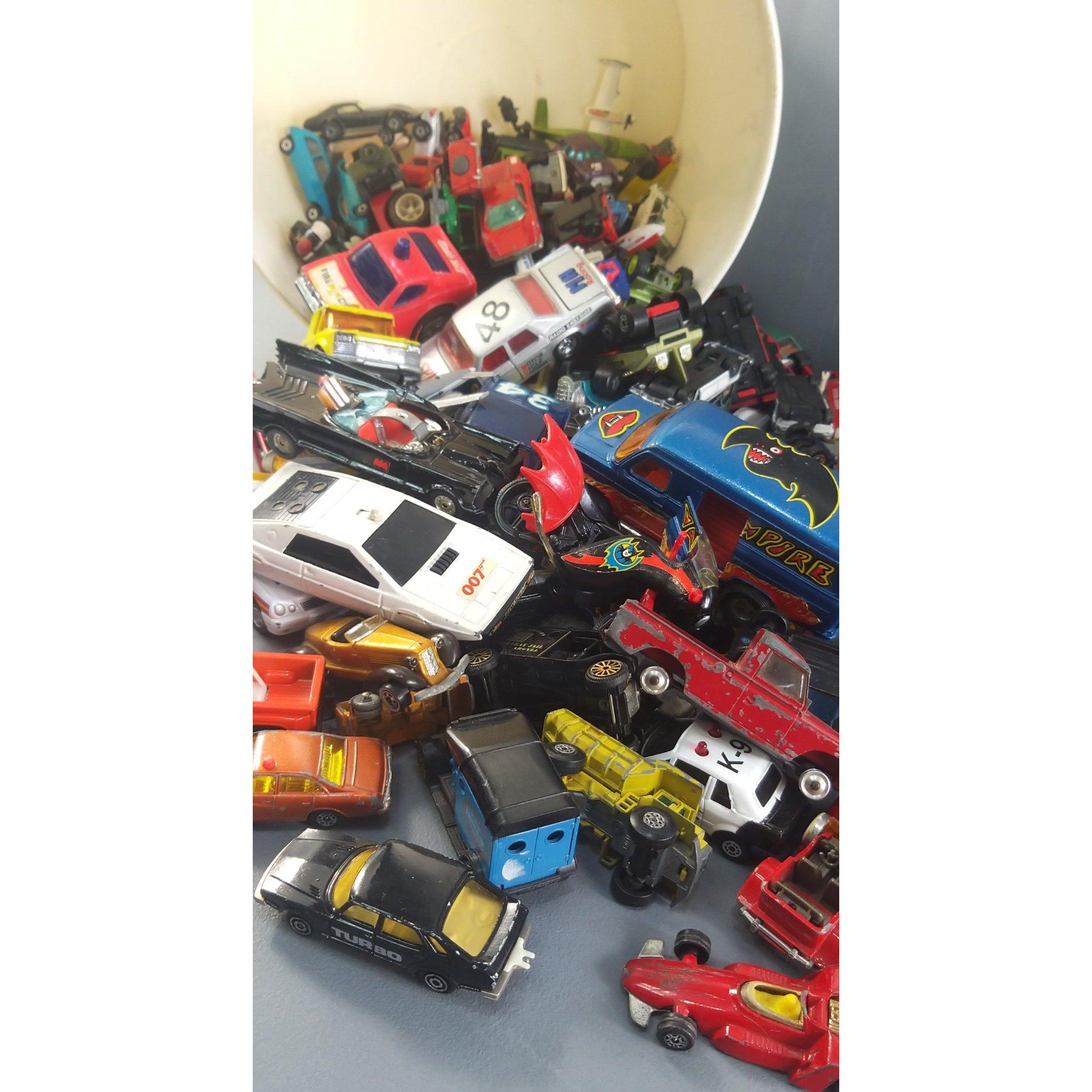 A tub of diecast vehicles. Mostly 'modern' but some 1970s etc. A fun collection to sort through.