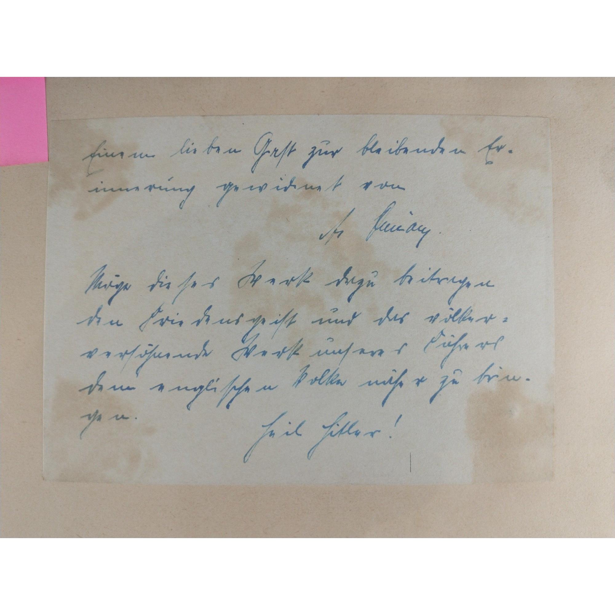 ADOLF HITLER Cigarette Card album complete and in generally good condition with minor wear to spine. Note interesting German written inscription with Heil Hitler sign off.