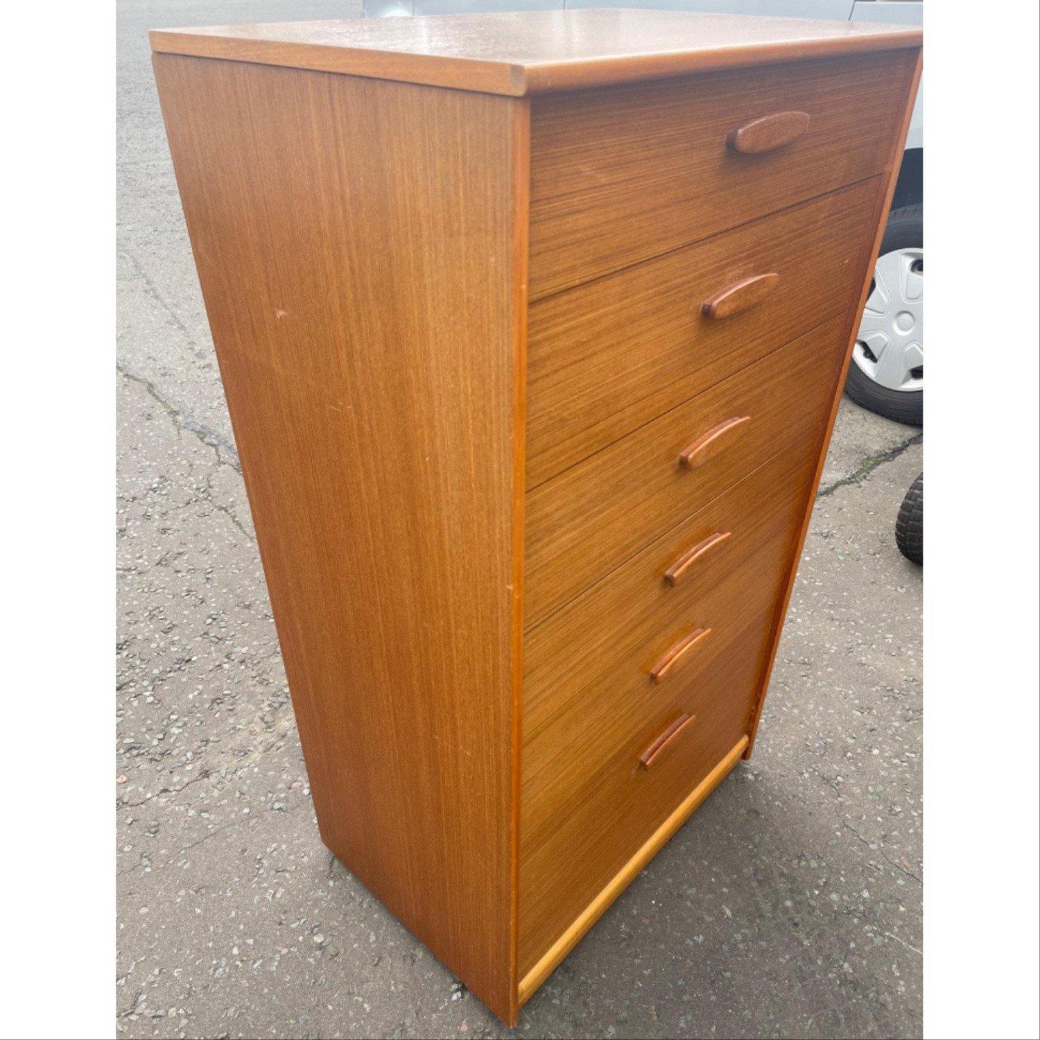 RETRO! A STYLISH tall 6 drawer chest of drawers on 4 castors - 4ft tall x 2ft wide x 28” depth approx
