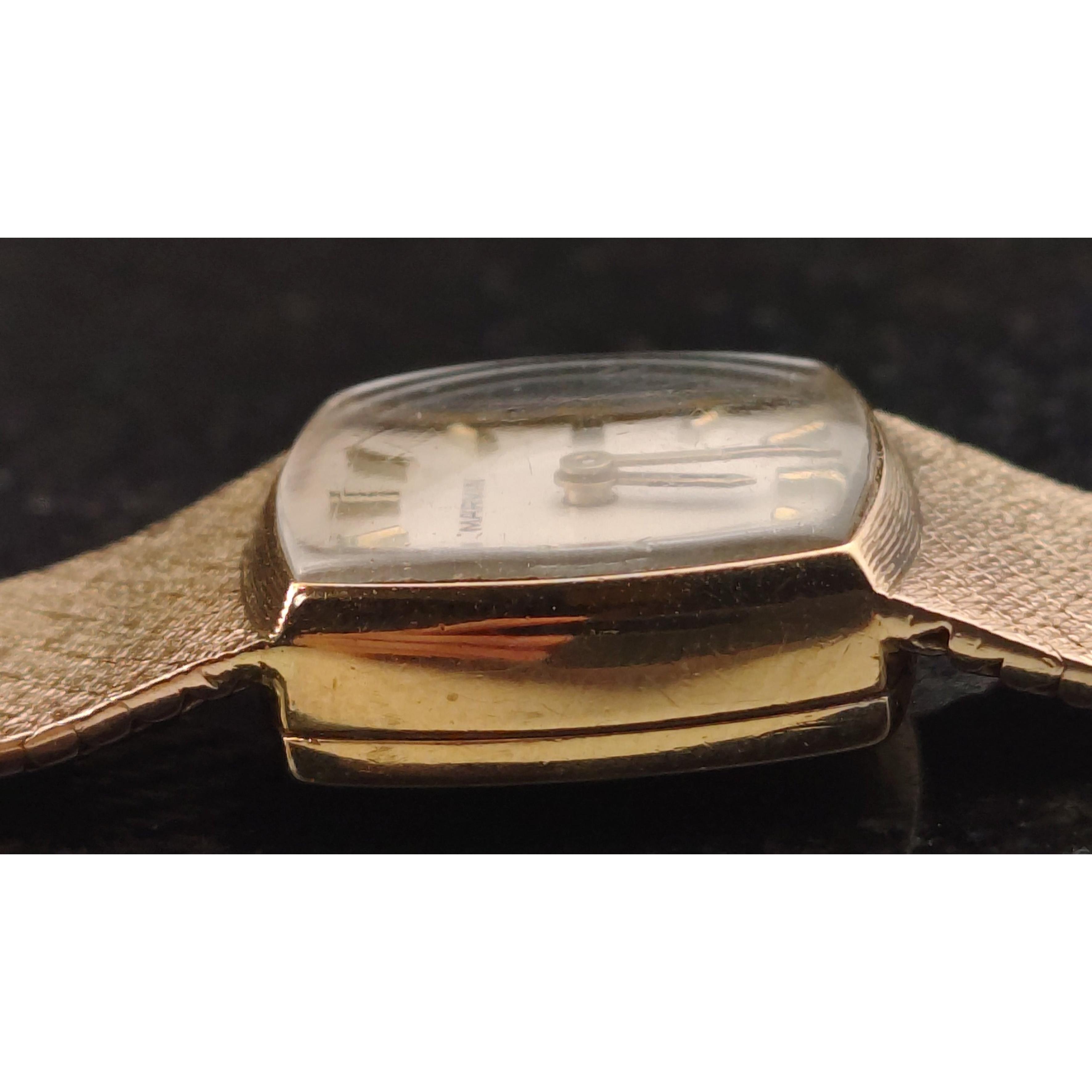 A boxed 375/9k stamped MARVIN ladies wristwatch with bracelet also stamped 375/9k - working order at time of valuation gross weight 27.70g approx